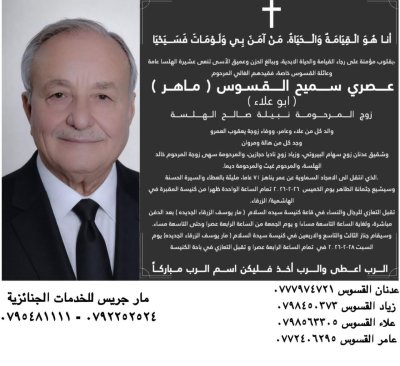 • عصري سميح القسوس  (ابو علاء) في ذمة الله
