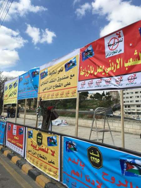 ونعلن نحن مزارعو الاردن من على رصيف مجلس الامة عن استمرارنا في وقفتنا حتى الغاء الضريبة عن القطاع الزراعي ونطلب من كل المهتمين بالشان الزراعي التواجد معنا حتى الغاء هذا القرار الظالم .