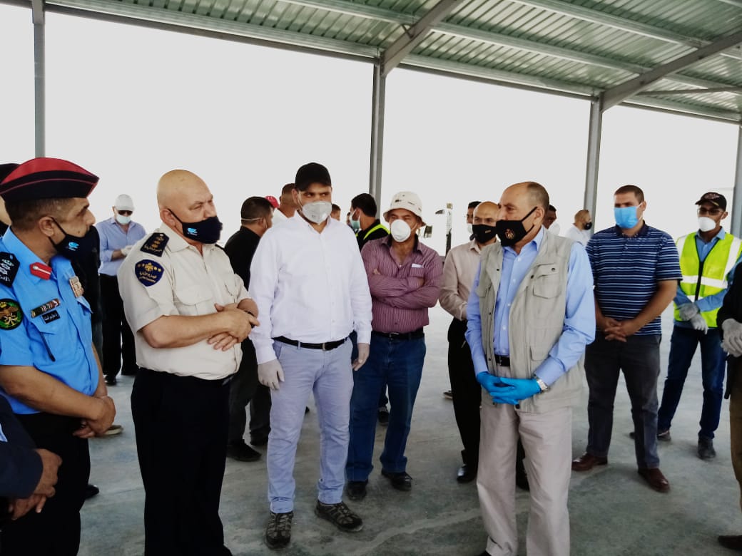 تفقد وزير الاشغال العامة والاسكان المهندس فلاح العموش اليوم ساحة مناولة البضائع بين الشاحنات في مركز حدود العمري، بعد إنجازها في زمن قياسي لم يتجاوز ٣٠ يوما لتلبية متطلبات السلامة الوقائية نتيجة ارتفاع أعداد إصابات "كورونا" بين سائقي الشاحنات القادمين من الخارج.