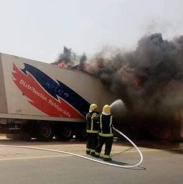 نجا سائق اردني من احتراق شاحنته في المملكة العربية السعودية.