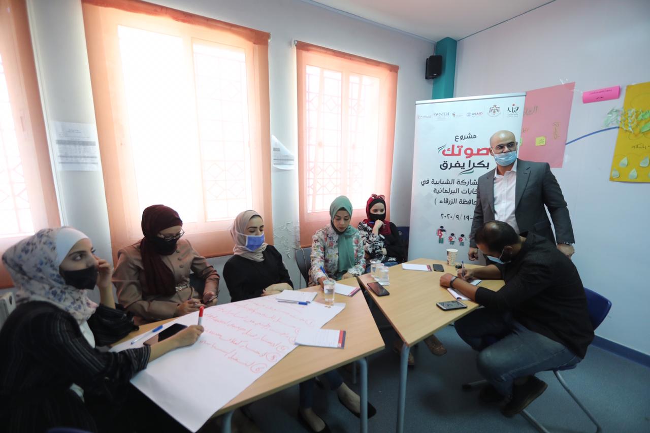 الورش التدريبية التي تنفذ بالتعاون مع وزارة الشؤون السياسية والبرلمانية والهيئة المستقلة للانتخاب، في مركز شباب وشابات الأمير محمد في محافظة الزرقاء ومركز شابات جرش في محافظة جرش، ومركز شباب بصيرا في محافظة الطفيلة، تطرقت بجانبها النظري اليوم للبرنامج التدريبي الخاص بإجراءات الهيئة المستقلة للانتخاب التي تتضمن قانون الانتخابات لمجلس النواب رقم (٦)، لسنة ٢٠١٦ وتعديلاته، وشروط الناخب، وسجل الناخبين، وشروط الترشح، وآليات الاقتراع، وضمانات النزاهة والشفافية والحيادية، ونظام إدارة العملية الانتخابية في مرحلة الاقتراع.