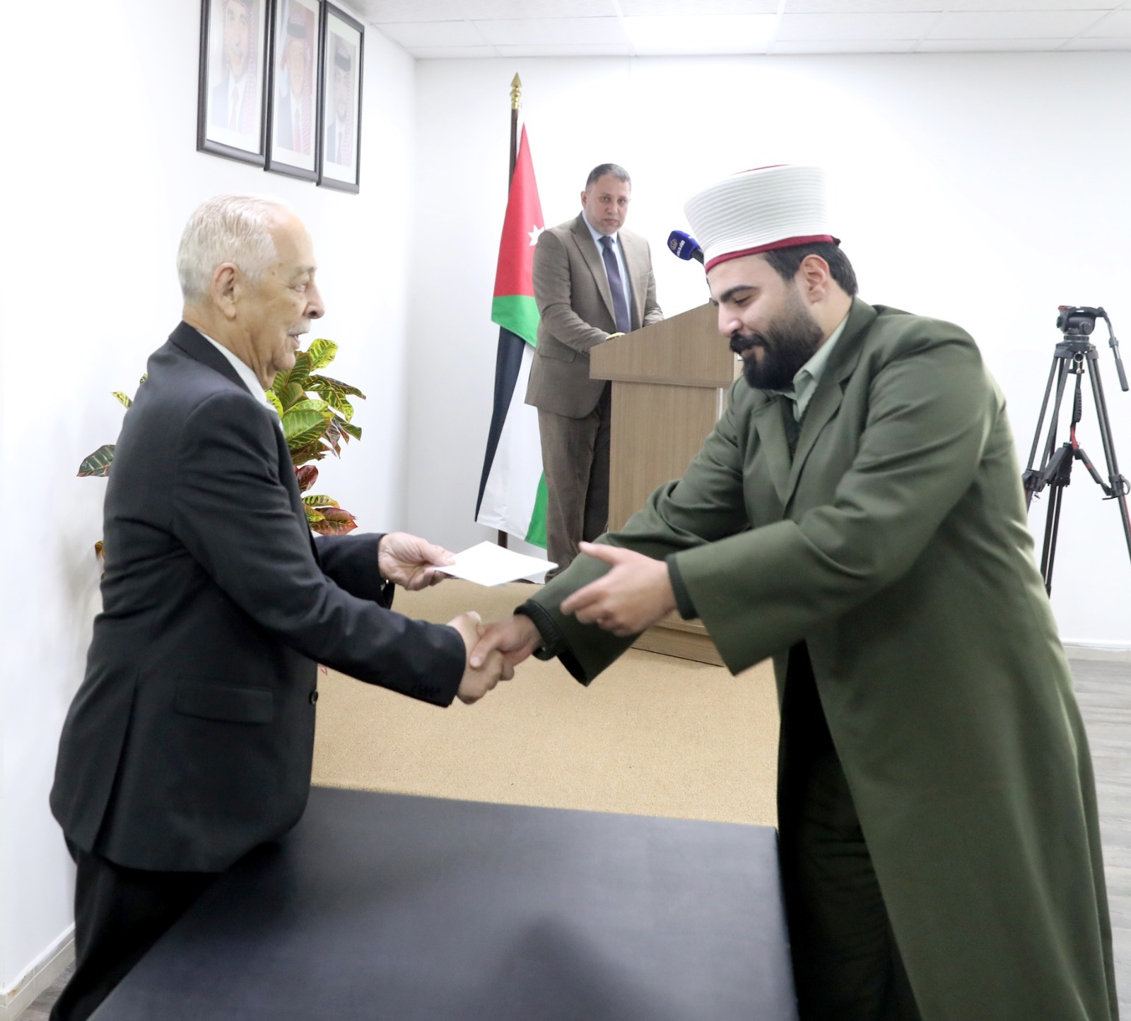 وحضر حفل تسليم المبادرة وزير الأوقاف والشؤون والمقدسات الإسلامية الدكتور محمد الخلايلة وسماحة قاضي القضاة عبدالحافظ الربطة وسماحة مفتي عام المملكة الدكتور أحمد الحسنات وفضيلة إمام الحضرة الهاشمية الدكتور أحمد الخلايلة وسماحة مفتي الأمن العام العميد سامر الهواملة والعقيد خالد البطوش من إفتاء القوات المسلحة.