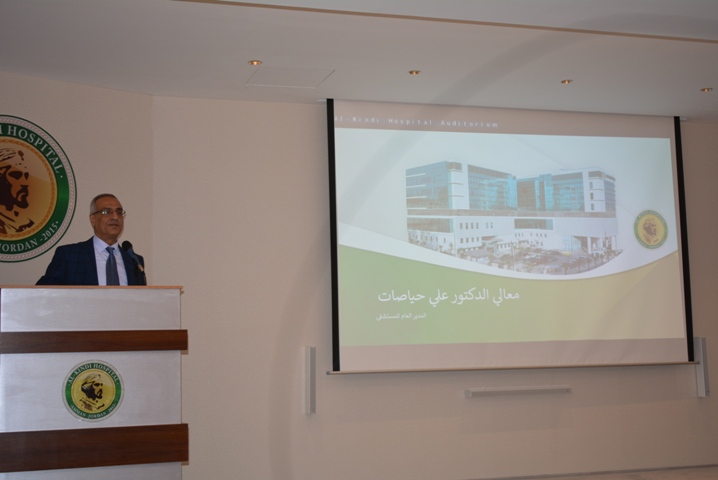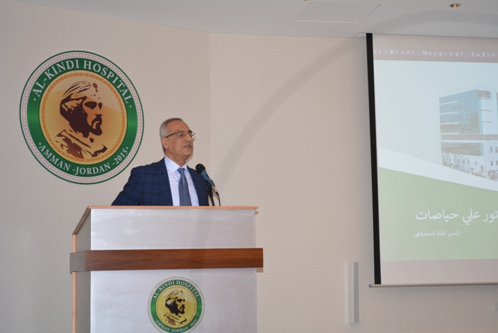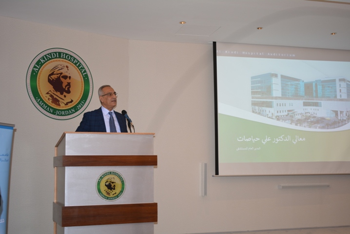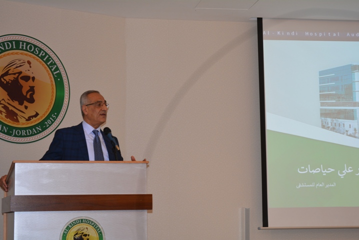 وكان حياصات قد ابتدأ كلمته بتقديم شرح عن مستشفى الكندي الذي بات صرحاً طبياً يتميز ببنائه وتجهيزاته وكوادره ويقدم خدمات متميزة وكبيرة لمرتاديه من داخل الأردن ومن خارجها وانه يجمع بين الخدمات الفندقية المتكاملة والطبية مما يبعث الراحة والطمأنينة ويطرد الخوف والحزن من نفوس المرضى.