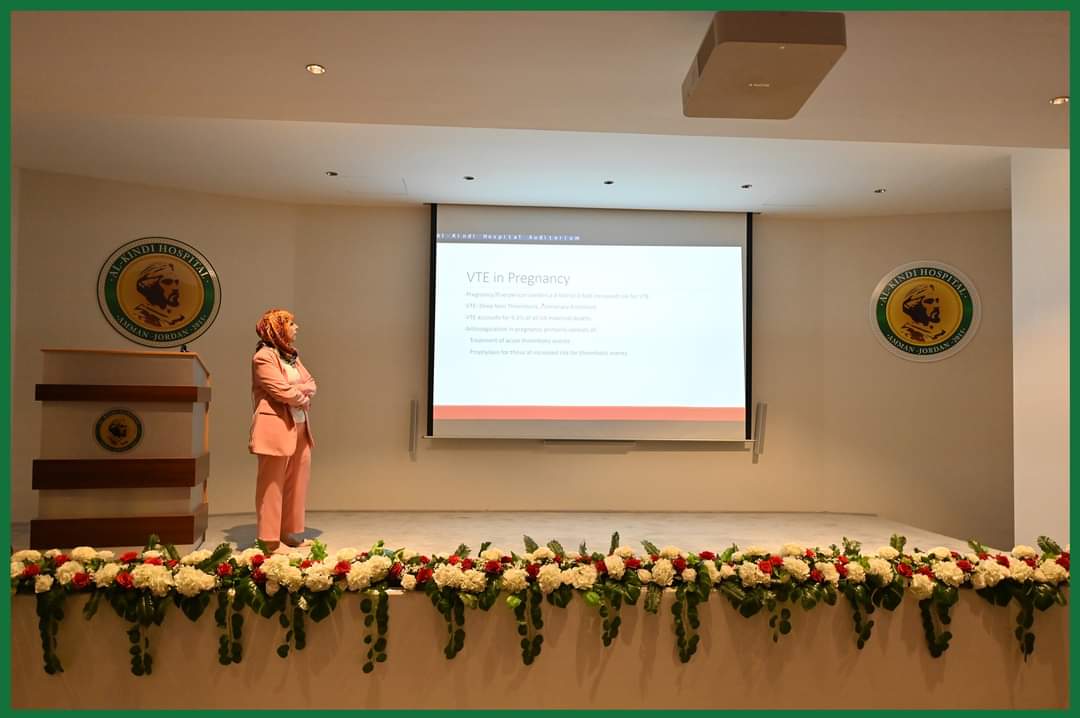 عمان – ضمن برامج التوعية والتثقيف الصحي في مستشفى الكندي القت الدكتورة مريم أبو حلاوة مستشارة النسائية والتوليد وجراحتها والعقم واطفال الانابيب محاضرة طبية توعوية بعنوان تجلطات الاوعية الدموية في الحمل وما بعد الولادة وعلاجها وذلك في مركز المؤتمرات في مستشفى الكندي .