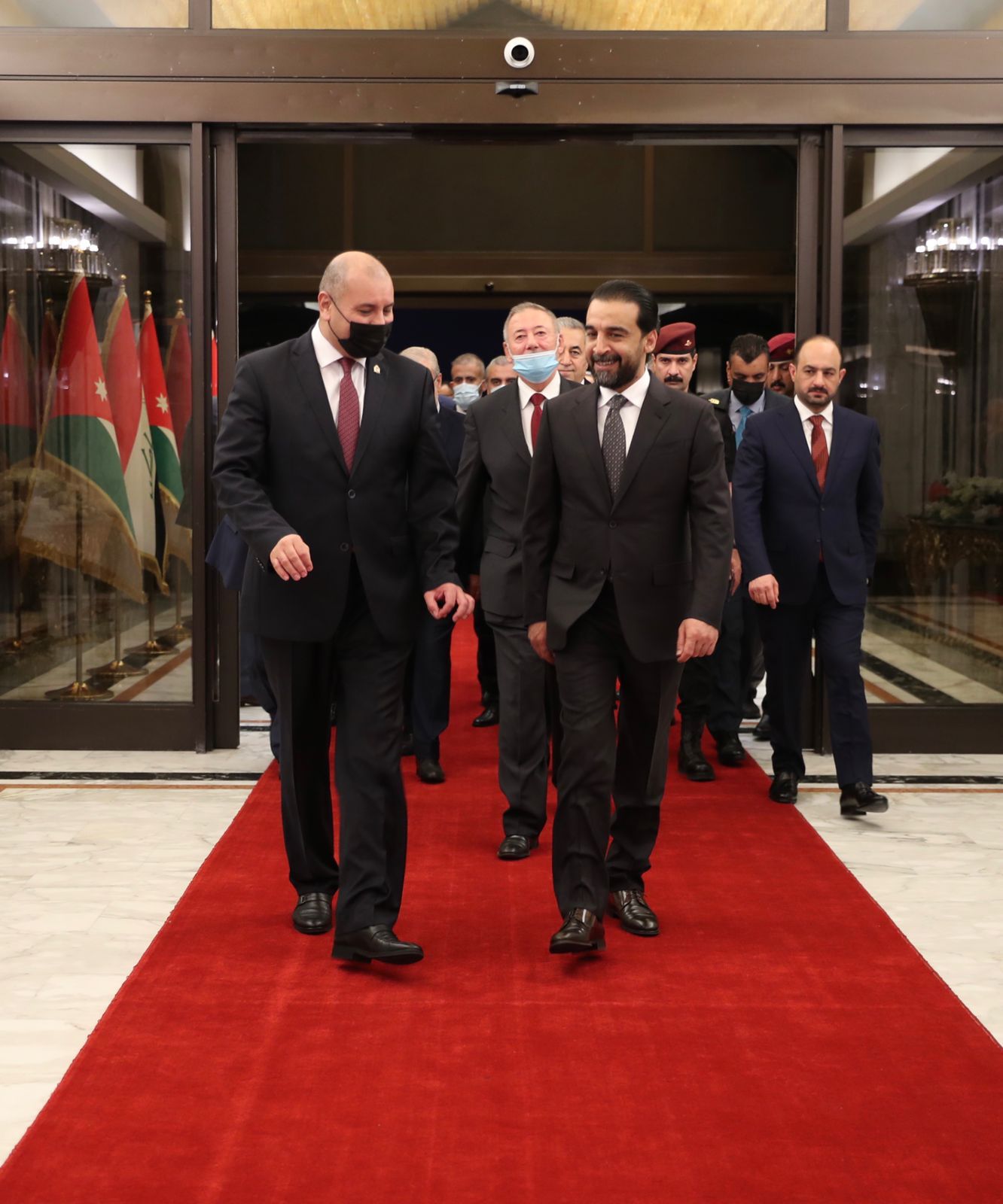 أنباء الوطن - استقبل رئيس مجلس النواب العراقي محمد الحلبوسي، رئيس مجلس النواب المحامي عبد المنعم العودات والوفد المرافق، حيث وصلوا مساء الأربعاء إلى العاصمة العراقية بغداد، بدعوة رسمية من رئيس البرلمان العراقي. ويجري الوفد مباحثات رسمية مع الحلبوسي، تتناول سبل تعزيز العلاقات البرلمانية، وتوثيق التعاون الثنائي في المجالات كافة، كما يلتقي عددا من رؤساء الكتل واللجان والتيارات السياسية العراقية. ويضم الوفد النائب الأول لرئيس المجلس أحمد الصفدي ورؤساء لجان، وممثلين عن الكتل النيابية. \