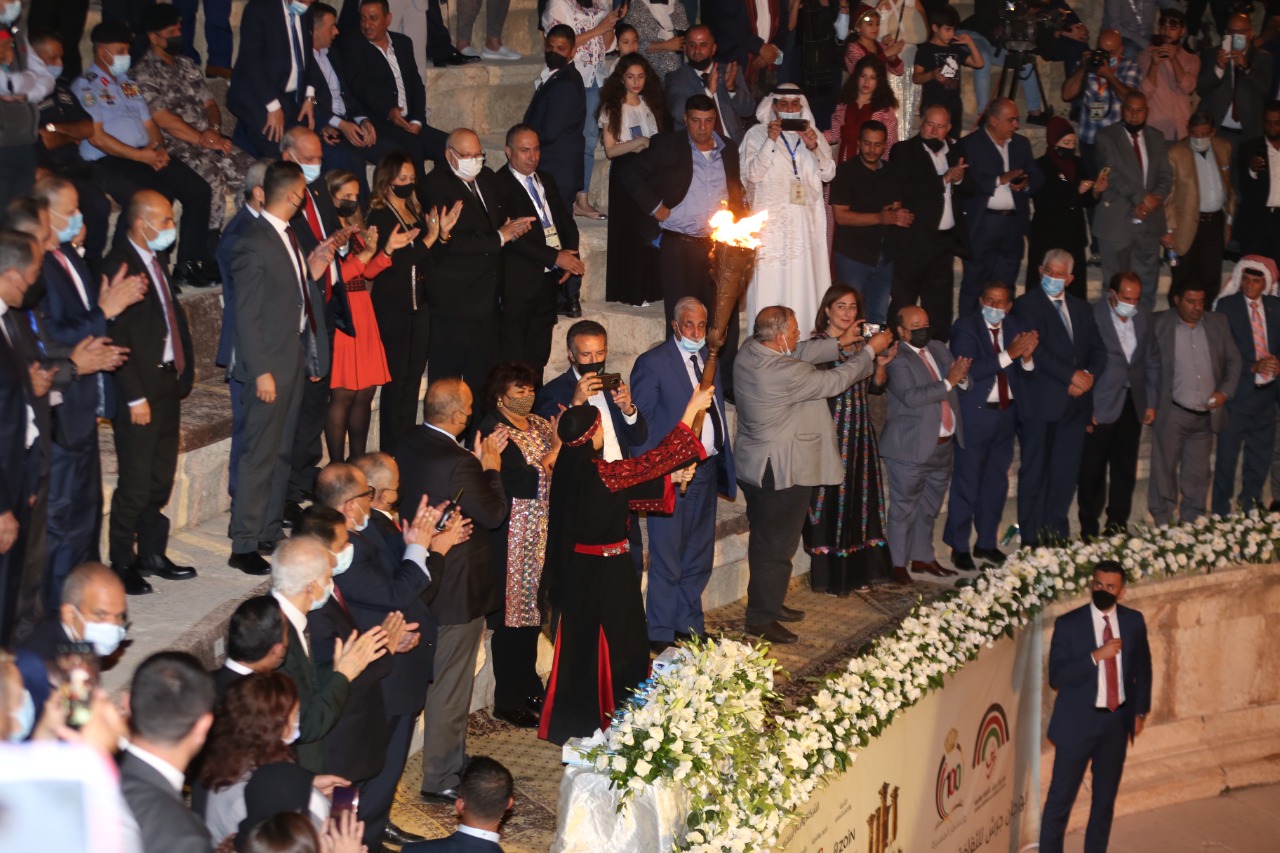 وبعد انتهاء الاستعراض اوقد راعي الحفل شعلة المهرجان معلنا انطلاق الفعاليات، وفي هذه الاثناء تقدم الفرقة الاستعراضية لوحة فنية راقصة بالمشاعل في تاكيد واضح على استمرار الفعل الثقافي والفني في جرش المدينة التي لا ينقطع عنها الابداع ولا تتوقف فيها مسيرة الفن ومشاعل النور، ثم الانتقال للوحة تؤكد السوسنة الوطنية قبل ان تنطلق المغناة الوطنية "مع عبدالله".