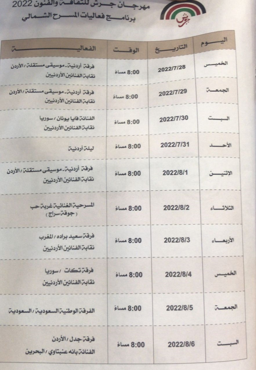 ووفق برنامج فعاليات المهرجان التي تبدأ يوم 28 تموز الحالي يستضيف 12 فعالية عربية من خارج الأردن و9 فعاليات أردنية.