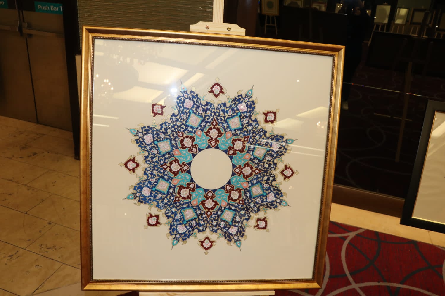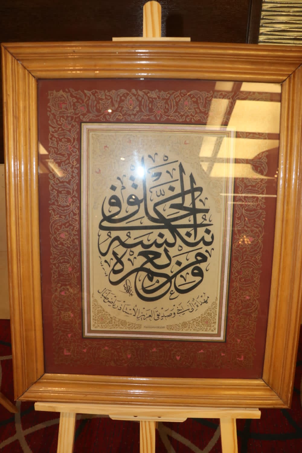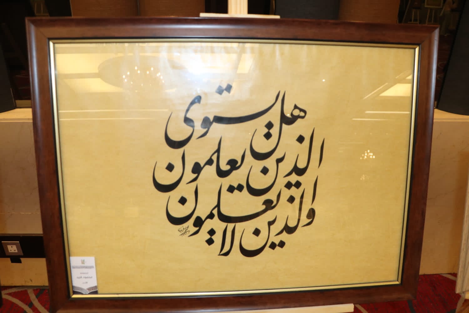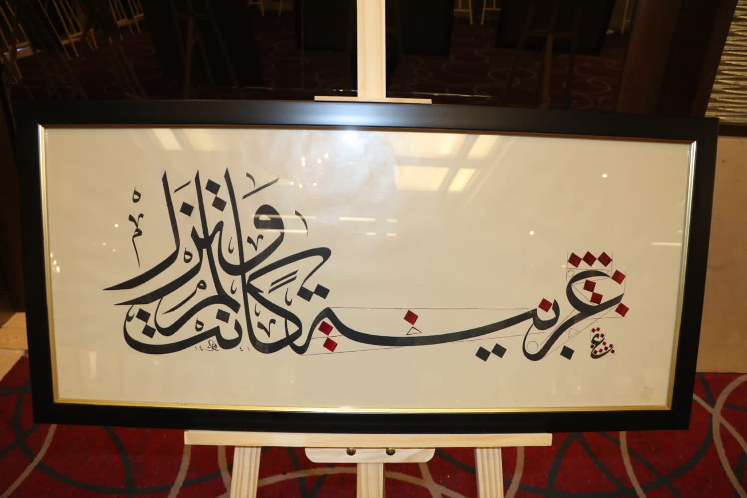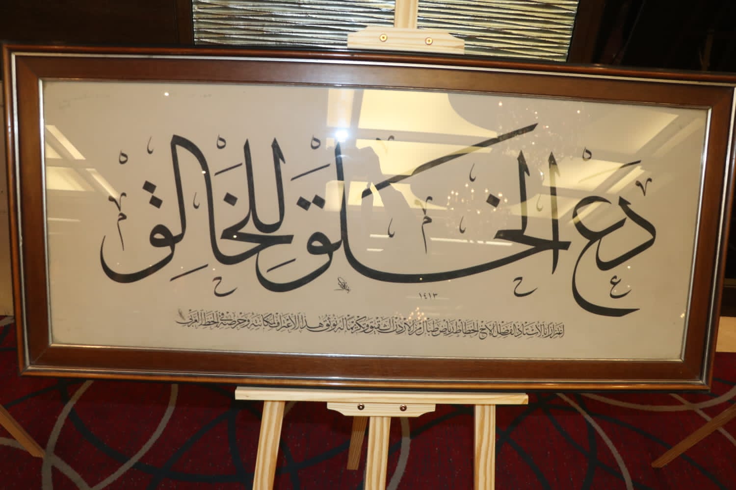 وتضمن المعرض الذي يستمر حتى 14 تشرين الأول، وشارك فيه ثلاثون خطاطا ومزخرفا بسبع وسبعين لوحة في فن الخط العربي والزخرفة تبرز جماليات هذا الخط وأنواعه مثل؛ الثلث والرقعة والنسخ، إضافة إلى لوحات في الزخرفة الاسلامية باستخدام الحبر والأصباغ وفنون التذهيب بشكل يدوي، ولوحات أخرى تدمج ما بين الخط العربي، والفن التشكيلي المعاصر من خلال توظيف آيات من القران الكريم، وبعض الأحاديث النبوية الشريفة، والشعر العربي والأقوال المأثورة.