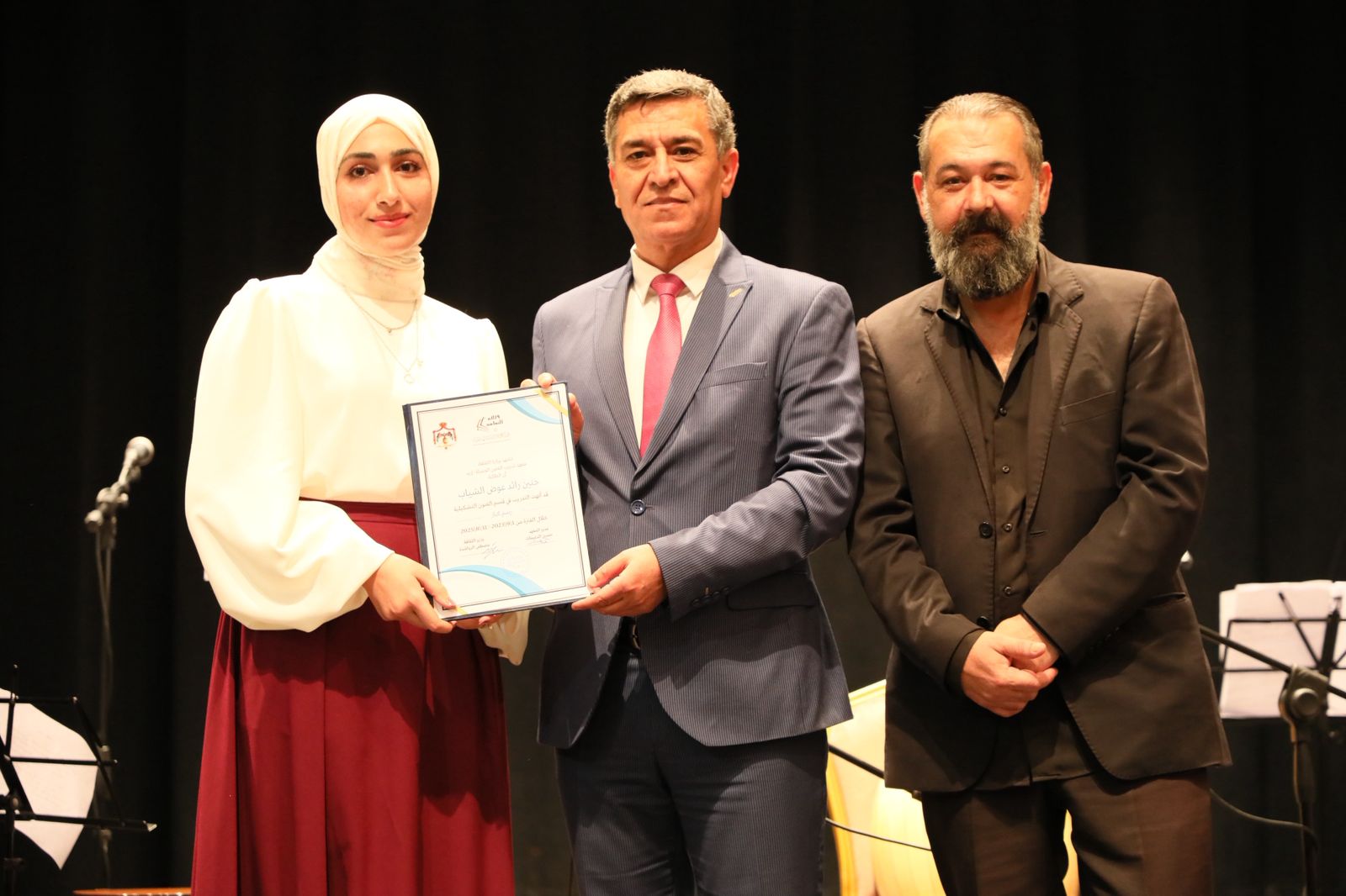 وكرم وزير الثقافة الرواشدة القائمين على برنامح التدريب، ومدير ثقافة اربد الدكتور سلطان الزغول. بدوره قام مدير مديرية الفنون الجميلة في وزارة الثقافة الفنان حسين ادغيمات بتسليم الشهادات على الطلبة .