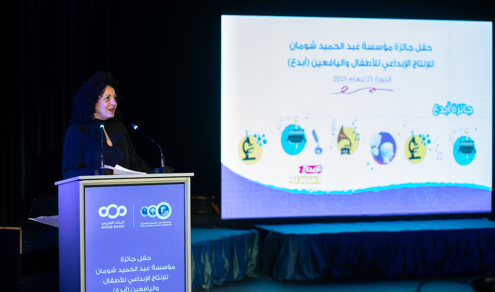 الرئيسة التنفيذية للمؤسسة فالنتينا قسيسية، أكدت في كلمتها خلال الحفل، أن جائزة "أبدع" التي تنفذها مؤسسة عبد الحميد شومان، ذراع البنك العربي للمسؤولية الثقافية والاجتماعية، جاءت إيمانا من المؤسسة بأن الإبداع ليس ترفا، بل حاجة إنسانية وتربوية تسهم ببناء شخصية الطفل وتنمية قدراته على التعبير والفهم.