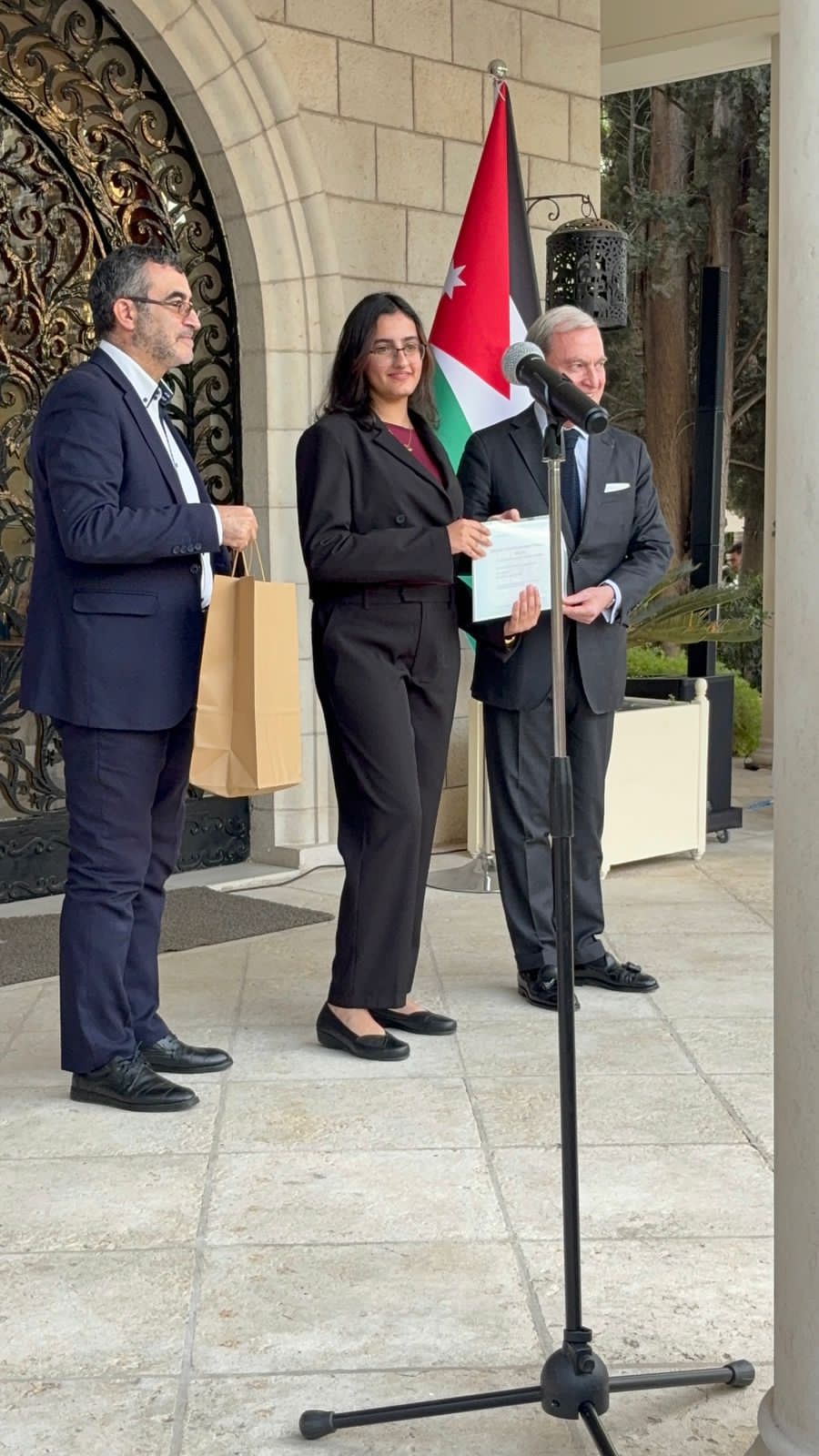 *السفير الفرنسي في عمان يكرم الطالبة لمار الراميني لتفوقها بامتحان اللغة الفرنسية المدرسي*
