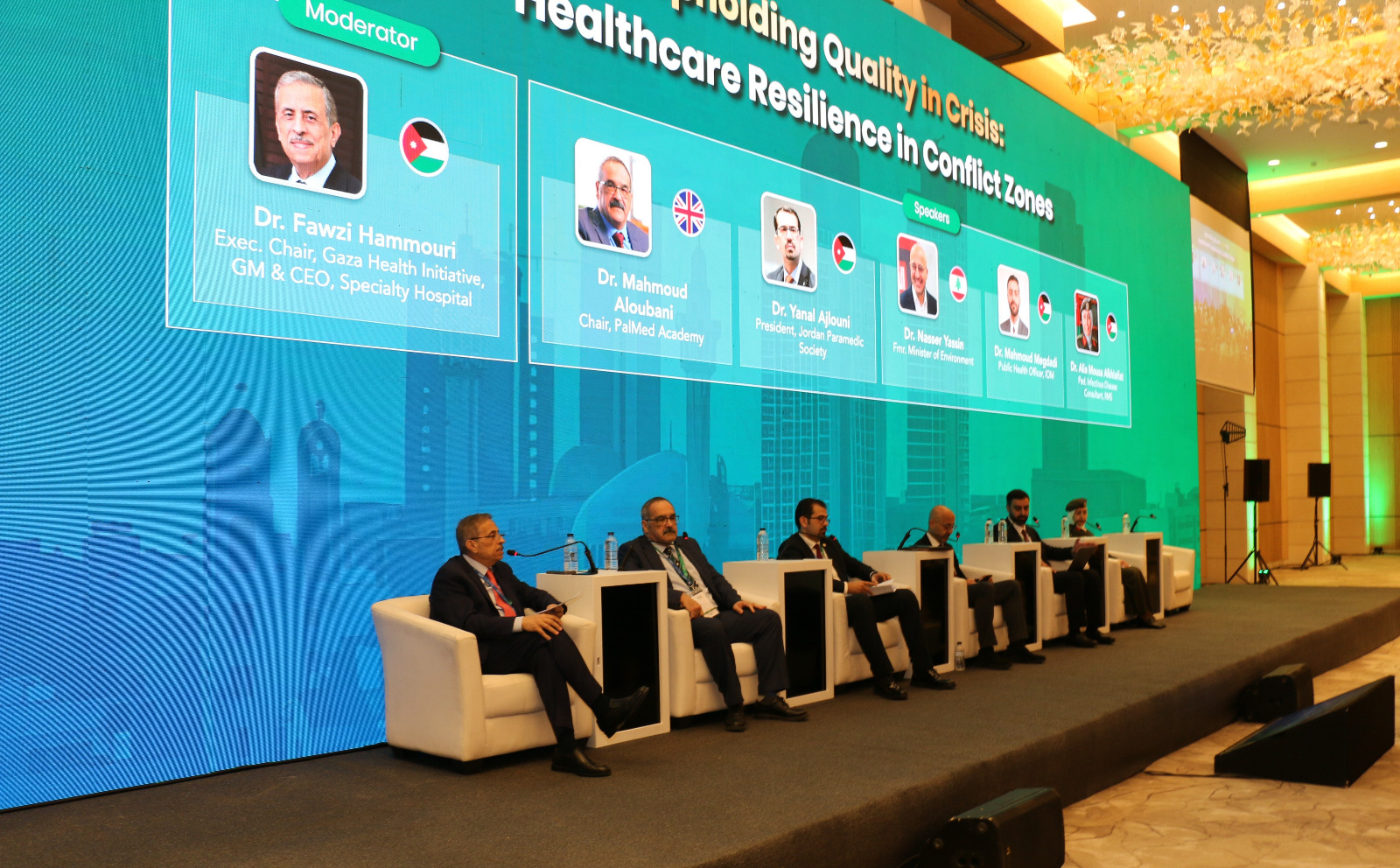 قام الدكتور فوزي الحموري، رئيس جمعية المستشفيات الخاصة والرئيس التنفيذي لمبادرة صحة غزة بإدارة الجلسة الأولى في المؤتمر الثامن لمجلس اعتماد المؤسسات الصحية بعنوان "صمود القطاع الصحي وتقديم رعاية آمنة في مناطق النزاع" حيث بين أهمية هذه الجلسة في هذا الوقت بالذات الذي يعاني منه الإقليم من عدة نزاعات أثرت سلباً على جودة الخدمات الصحية المقدمة في مناطق النزاع.