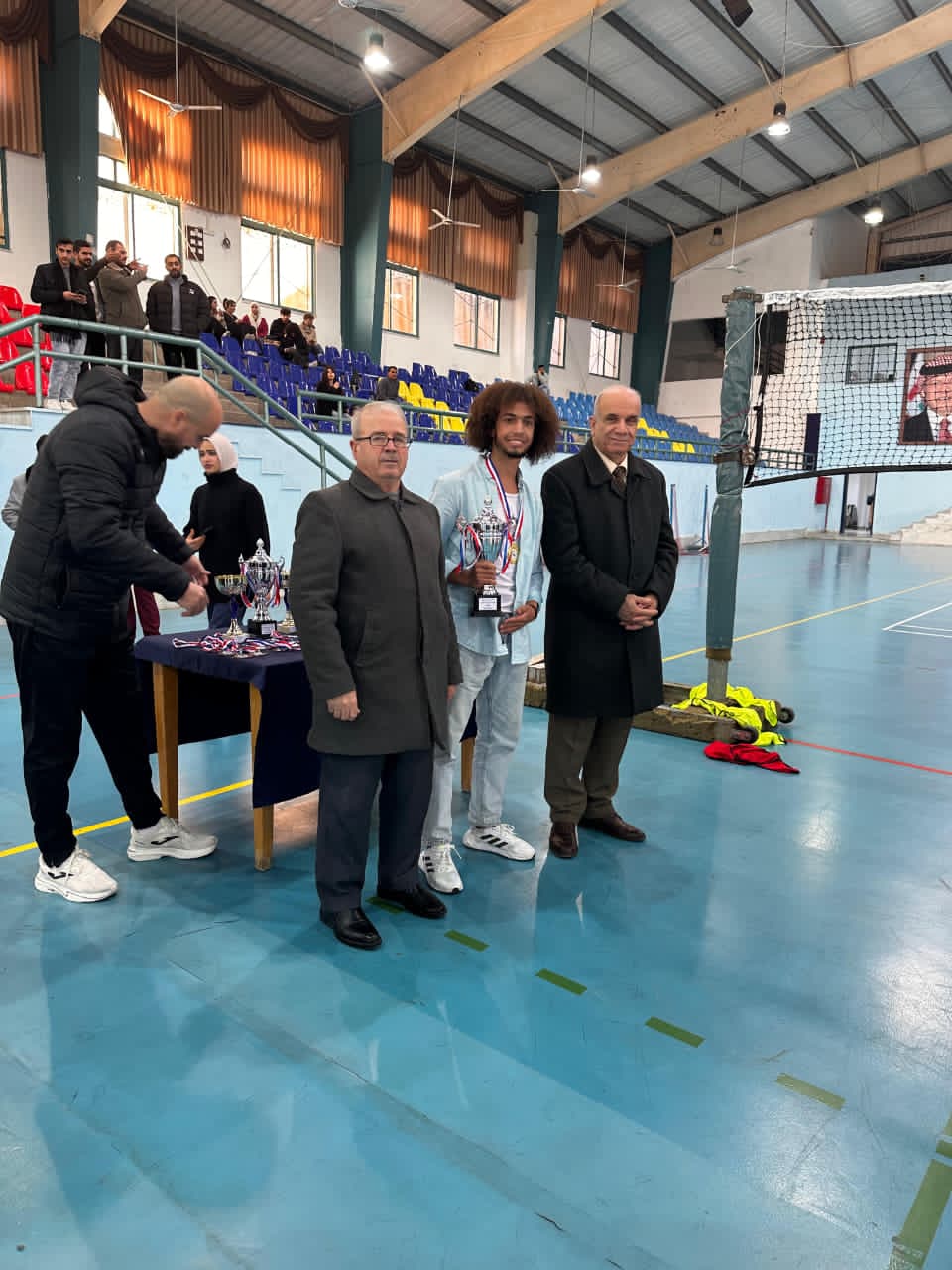 وشهدت المباراة النهائية لبطولة كرة الطائرة لطلاب كليات الجامعة، التي أقيمت مؤخرًا في الصالة الرياضية، منافسة قوية بين كلية التمريض وكلية الهندسة، وأسفرت عن فوز فريق كلية الهندسة، وسط أجواء حماسية وروح رياضية عالية.