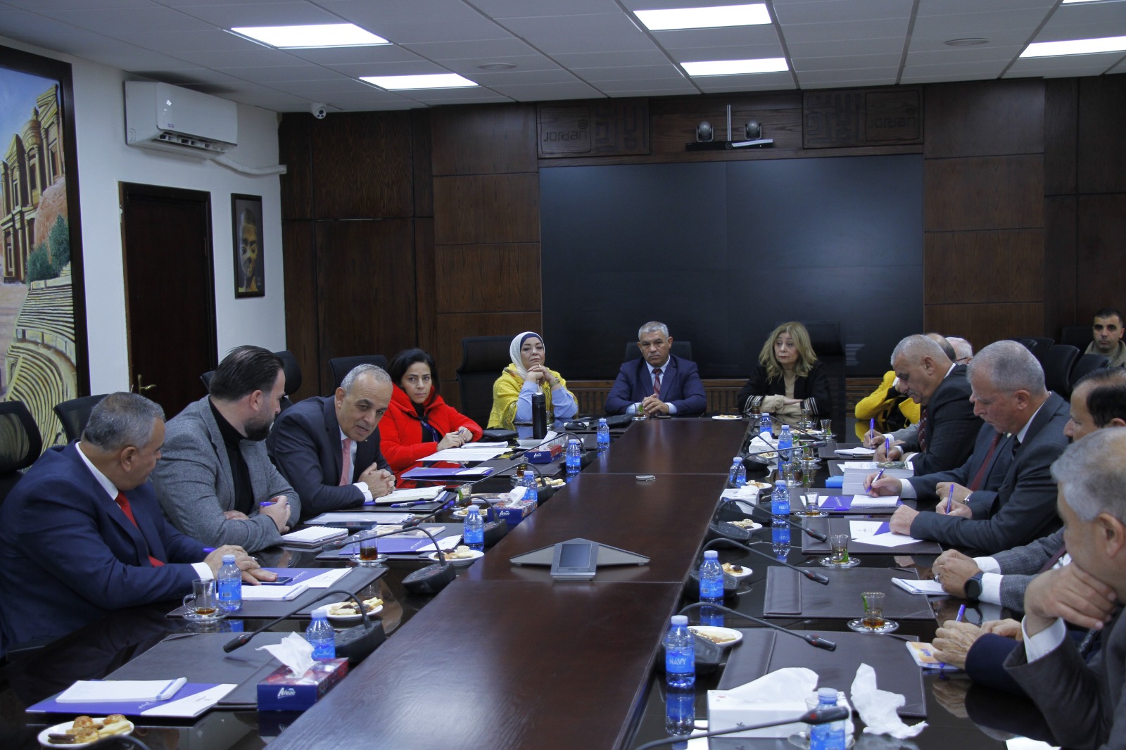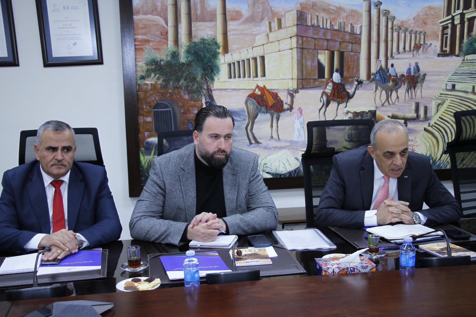 وخلال الإجتماع جرى استعراض الجهود الوطنية للمحافظة على التراث الثقافي الأردني وتعزيز الهوية الوطنية الأردنية،إلى جانب مناقشة واقع القطاع السياحي خلال الفترة الأخيرة،وما شهده من تحسن تدريجي بسبب عودة الطيران منخفض التكاليف وتحسن الظروف الإقليمية،كما تناول الاجتماع بحث مجالات العمل المشترك،بما يشمل المبادرات الهادفة لرفع الوعي السياحي