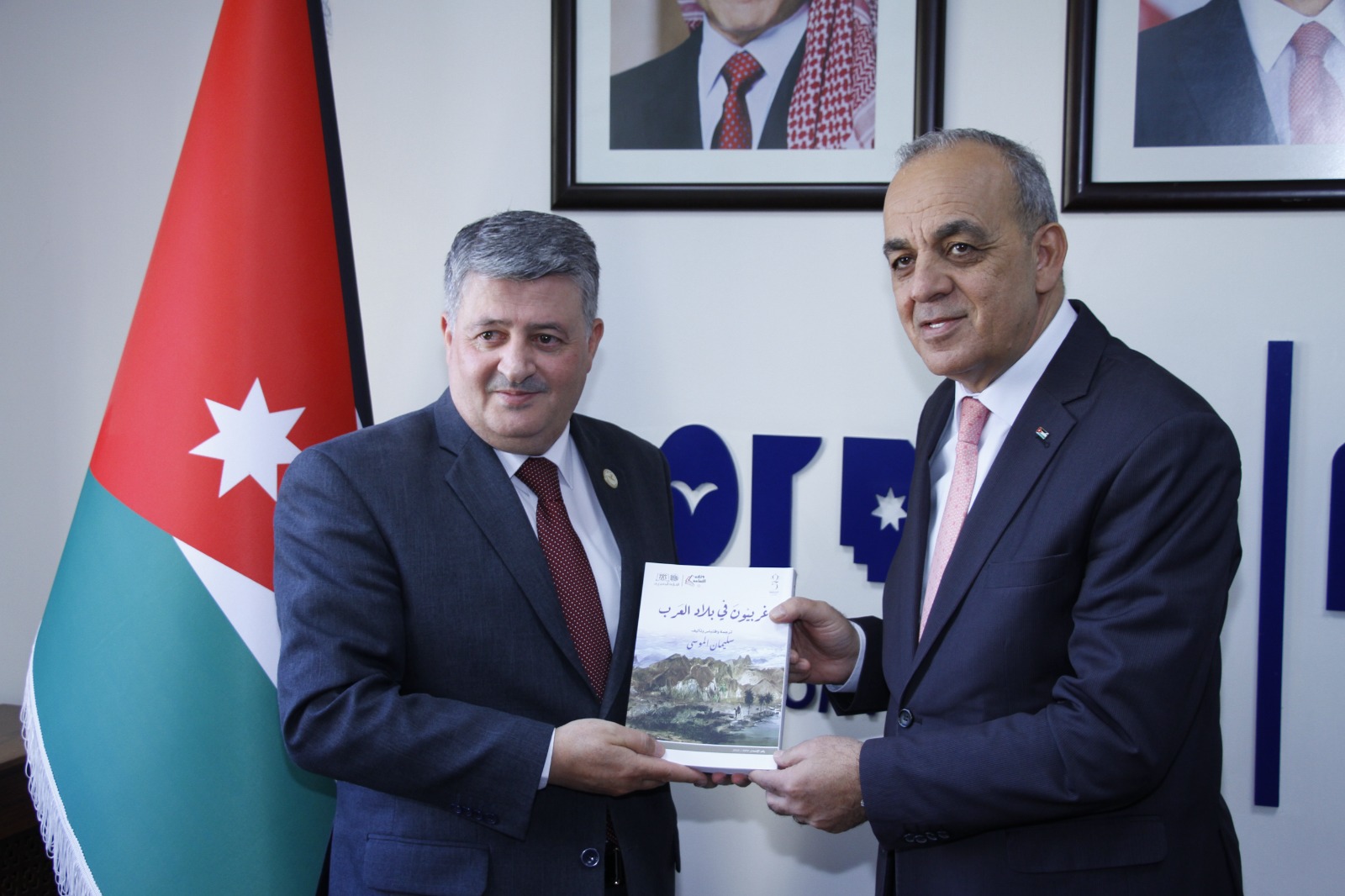 كما قدم العزام للدكتور حجازين بمناسبة هذه الزيارة موسوعة تاريخ الأردن في القرن العشرين من عام 1900-1995 ونسخة أخرى عن كتاب (غربيون في بلاد العرب) وهي من مقتنيات مكتبة جمعية عَون الثقافية الوطنية (مكتبة المؤرخ سليمان الموسى)