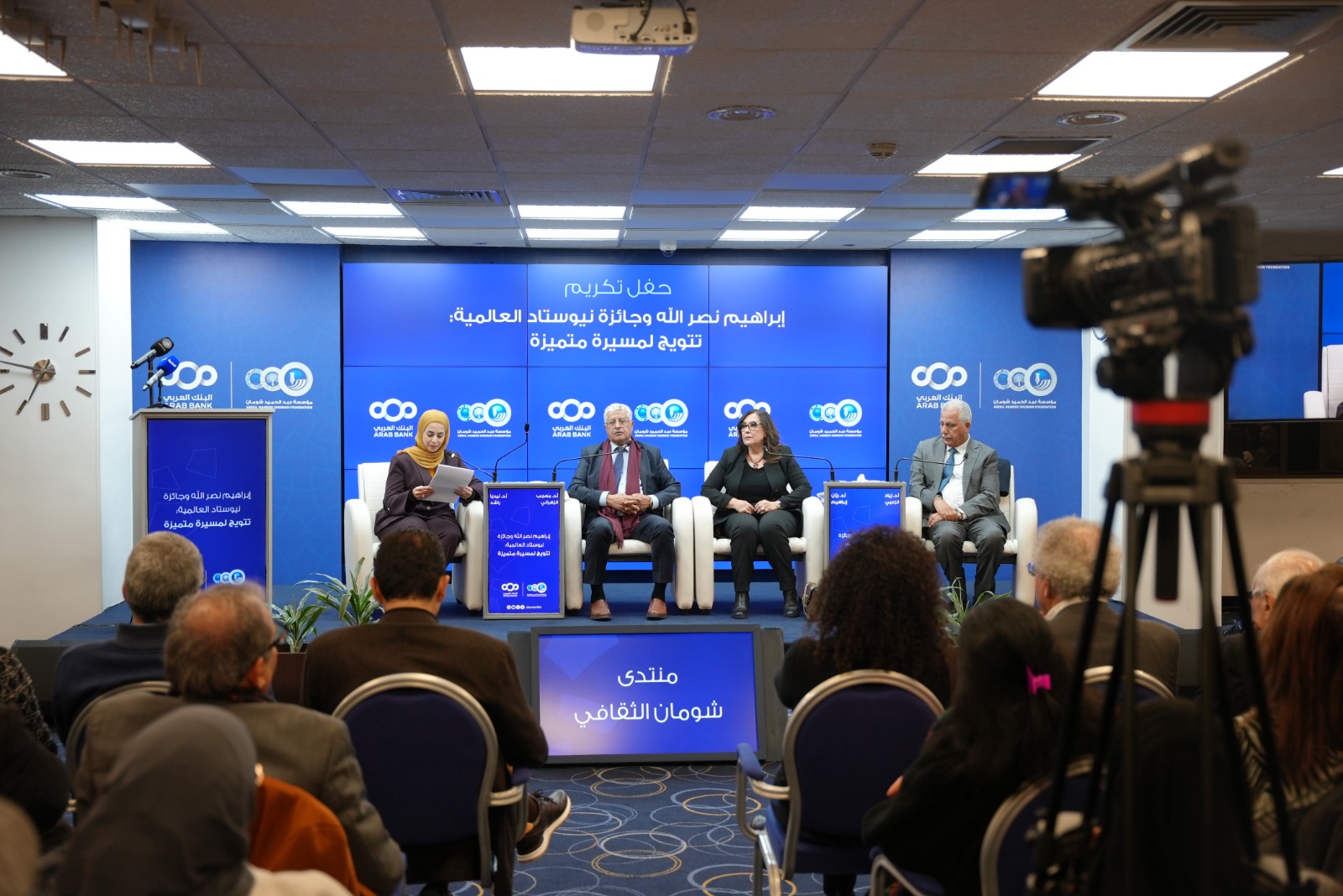 من جهتها قالت الدكتورة رزان إبراهيم، "إننا وإذ نحتفي بإبراهيم نصر الله اليوم، فلأن وقع الجائزة يتجاوز حدود الإنجاز الفردي لمشروع سردي متميز، ليغدو حدثا ثقافيا يمس قلب الوعي الجمعي والضمير الإنساني، ذلك أنه يحمل اعترافا رمزيا بأدب نجح في إنتاج خطاب إنساني وجمالي لافت، بل وأرى فيه عاملا من عوامل إدراج التجربة الفلسطينية تحديدا في خريطة السرد العالمي بكل ما تحمله من أبعاد سياسية وتوثيقية".