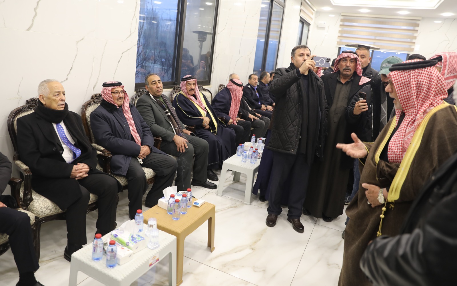 *عمان ١٨ كانون الثاني ٢٠٢٦-* مندوبا عن جلالة الملك عبدالله الثاني وسمو الأمير الحسين بن عبدالله الثاني، ولي العهد، قدم رئيس الديوان الملكي الهاشمي يوسف حسن العيسوي، اليوم الأحد، واجب العزاء إلى عشائر الحويان والمناصير وعازر.