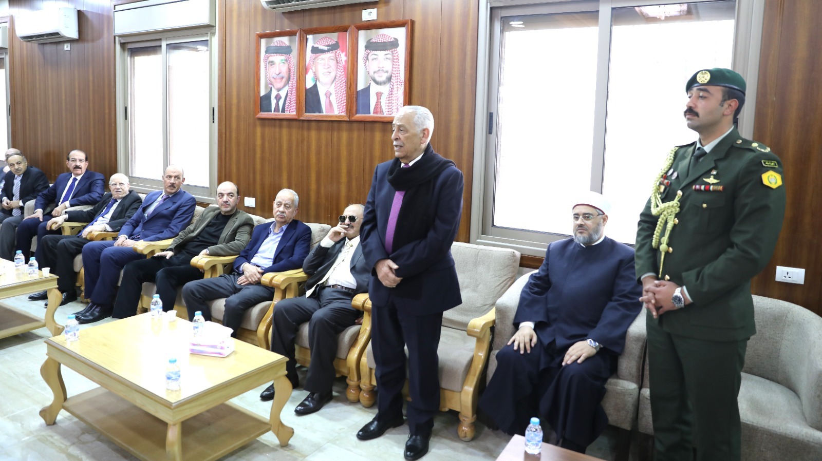 *وفي مدينة السلط بمحافظة البلقاء* نقل العيسوي، خلال زيارته بيت عزاء المرحومة الدكتورة مها أحمد ياسين الهباهبة، زوجة العميد المتقاعد أمجد الخريسات، تعازي ومواساة جلالة الملك وسمو ولي العهد الى ذوي المرحومة، وعموم عشيرتي الخريسات والهباهبة، سائلا المولى عز وجل ان يتغمدها بواسع رحمته.