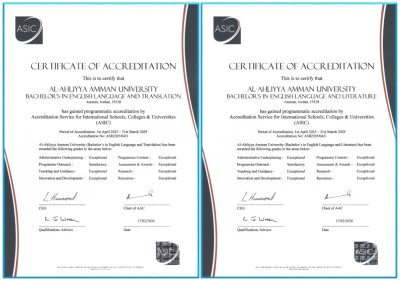 عمان الاهلية تحوز على الاعتماد البريطاني ASIC ببرنامجي اللغة الانجليزية 《الآداب والترجمة 》 وفق أعلى مستوى