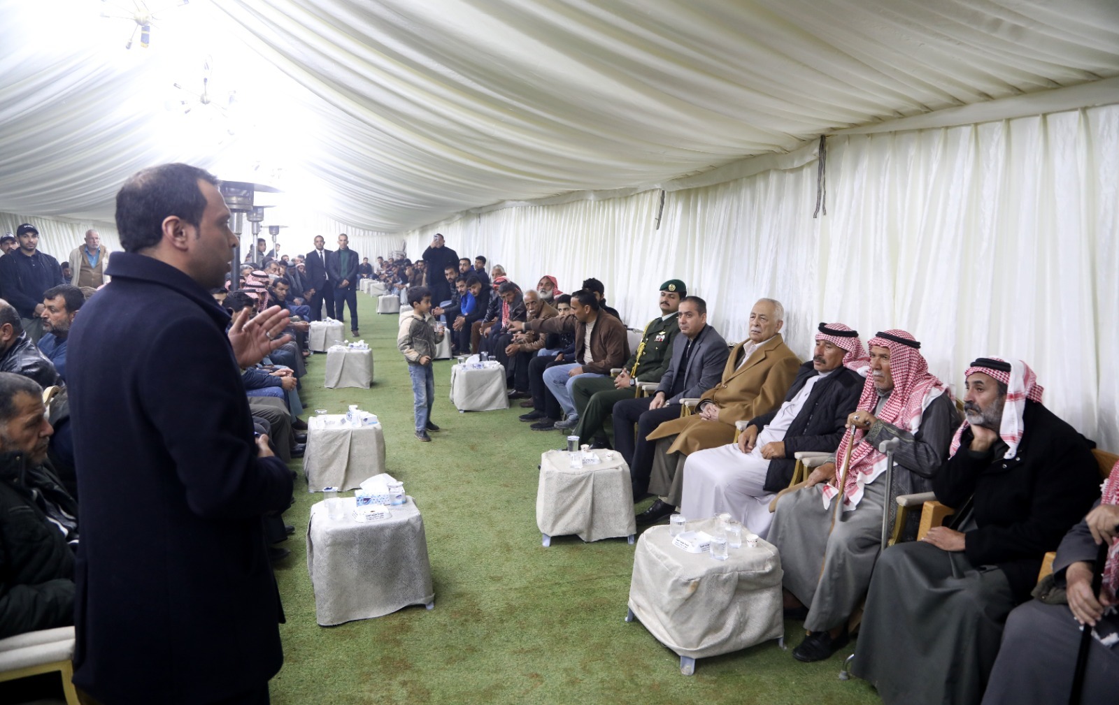 *وفي منطقة أرينبة الشرقية في لواء الجيزة، بمحافظة العاصمة*، نقل العيسوي، خلال زيارته بيت عزاء شهيد الواجب الرقيب خلدون أحمد الرقب، تعازي ومواساة جلالة الملك إلى ذوي الفقيد وعموم عشيرة الرقب، سائلاً المولى عز وجل أن يتقبل الشهيد في عليين، وأن يلهم أهله الصبر والثبات، ويجزيه عنا وعن وطنه خير الجزاء.