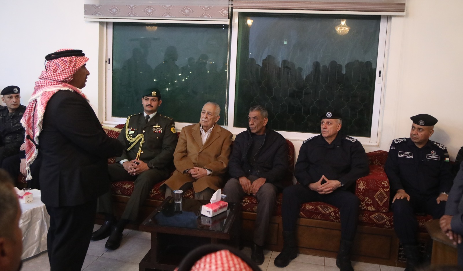 *عمان – 18 آذار 2026-* مندوبا عن جلالة الملك عبدالله الثاني وسمو الأمير الحسين بن عبدالله الثاني، ولي العهد، قدّم رئيس الديوان الملكي الهاشمي يوسف حسن العيسوي، اليوم الأربعاء، واجب العزاء لعائلات شهداء الواجب من مرتبات إدارة مكافحة المخدرات، الذين استشهدوا خلال مداهمة أمنية على أحد المطلوبين الخطرين في مناطق شرق العاصمة.