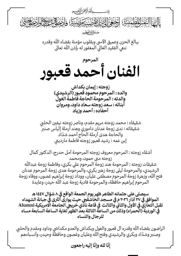 الفنان احمد قعبور في ذمة الله