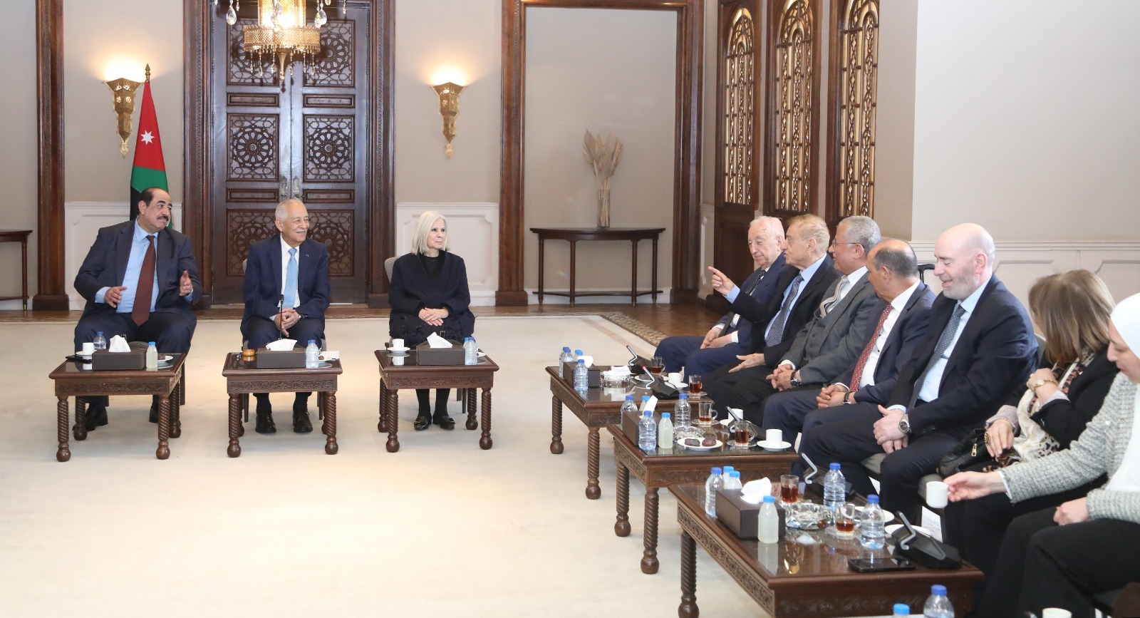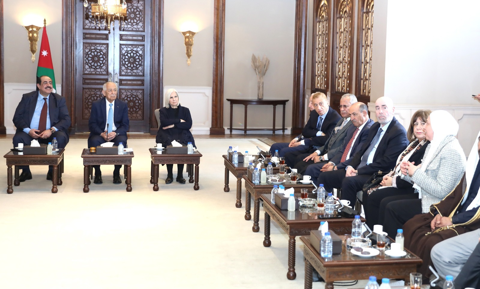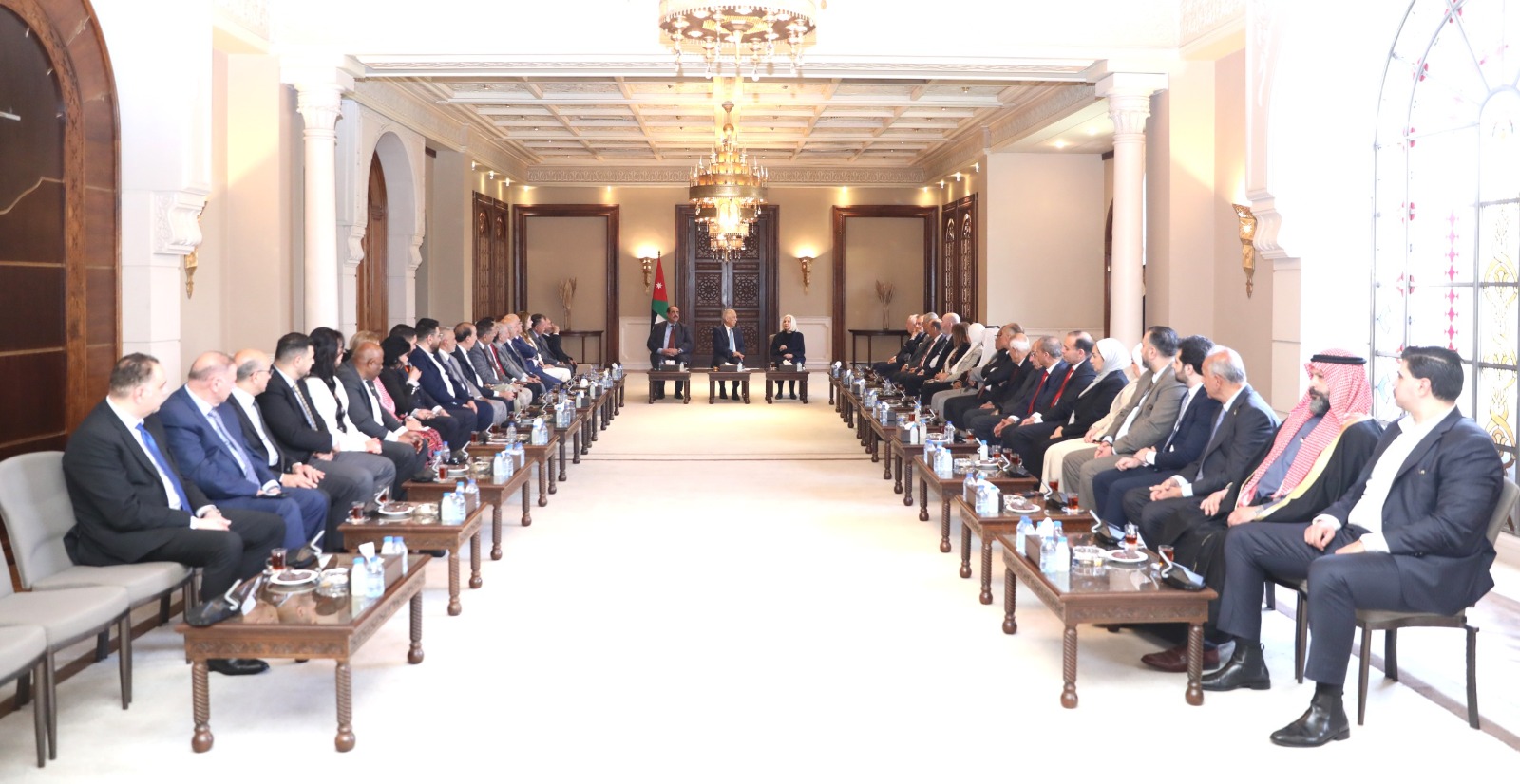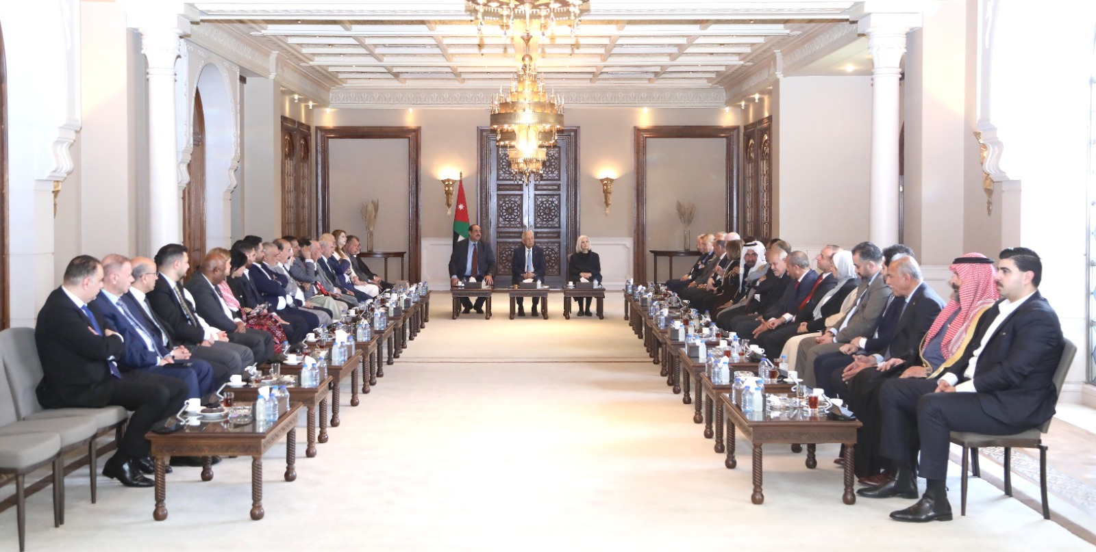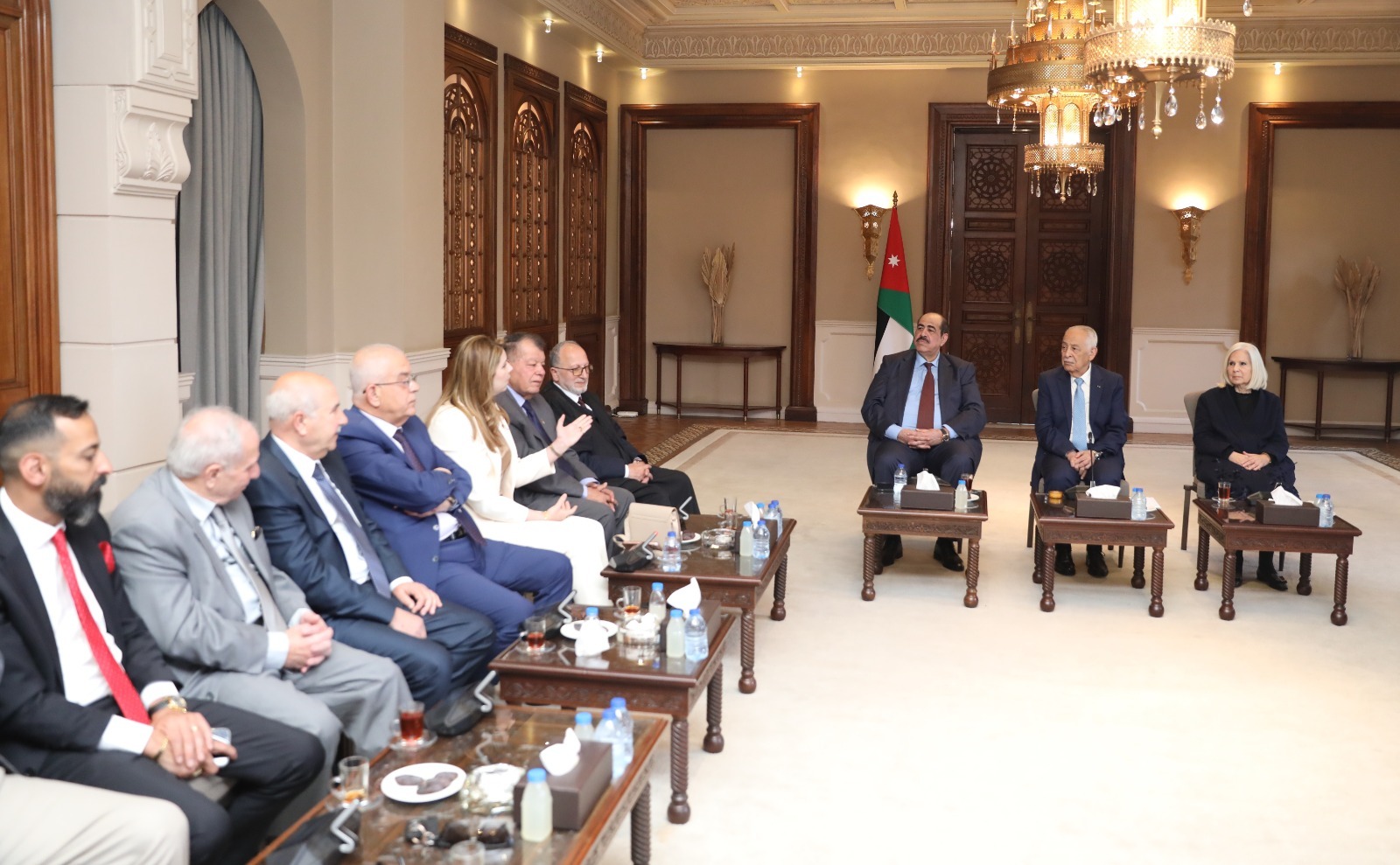 ونقل العيسوي، في بداية اللقاء، تحيات جلالة الملك عبدالله الثاني، وسمو الأمير الحسين بن عبدالله الثاني، ولي العهد، إلى الوفد، الذي يجسد نخبة وطنية وازنة تضم شخصيات تمثل مختلف محافظات المملكة والقطاعات، مؤكداً أن هذا الحضور يعكس عمق التماسك الوطني وتكامل الأدوار في خدمة الأردن، ويعبّر عن صورة حية لوحدة الصف والوعي الوطني الراسخ.