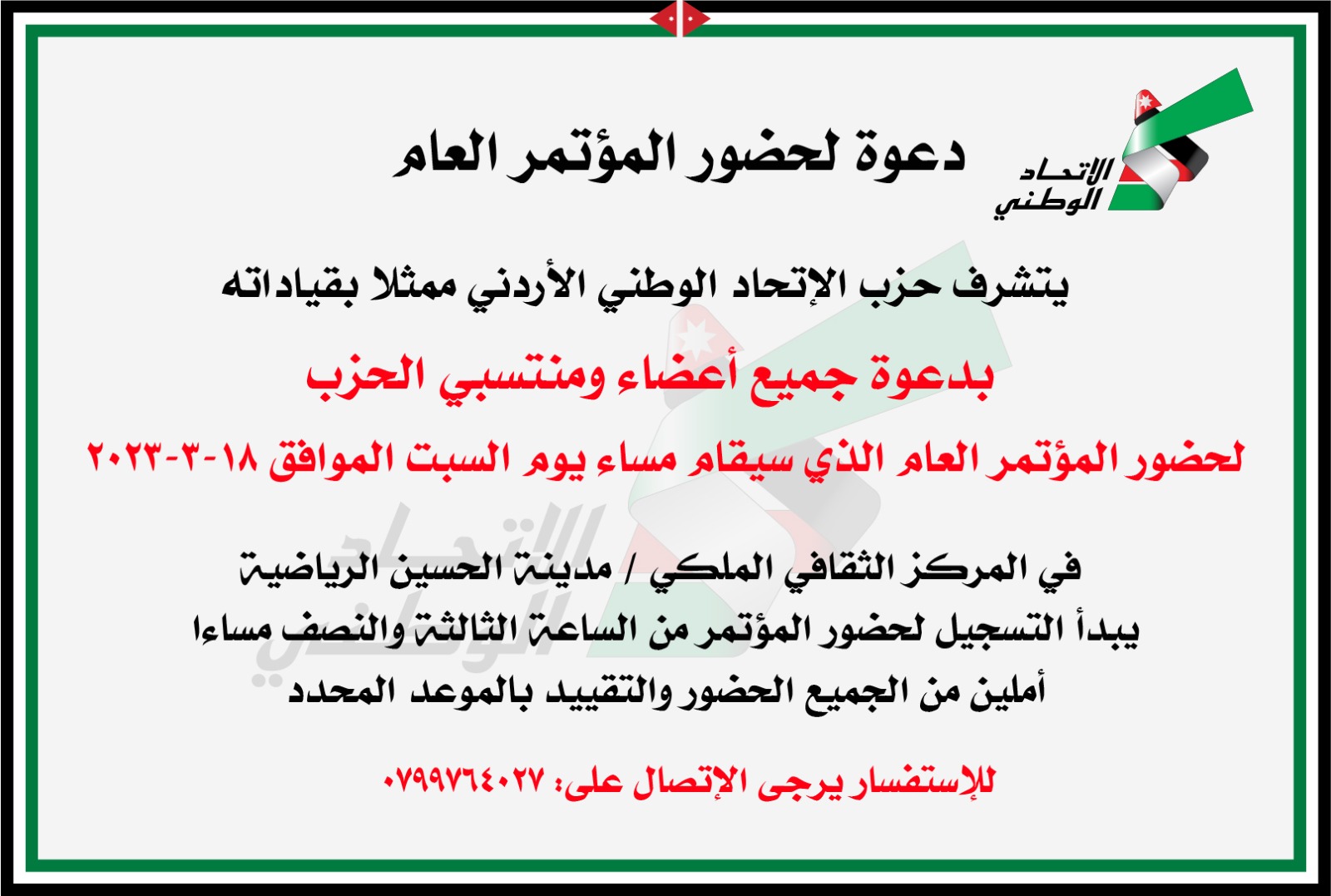 حزب الاتحاد الوطني يدعو الاعضاء ومنتسبي الحزب لحضور المؤتمر العام
