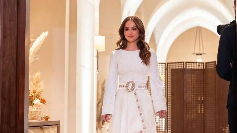الأميرة إيمان تضع حزام ثوب زفاف الملكة رانيا - صورة