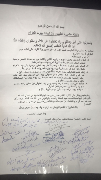 عشيرة الطيبين / بني صخر تعتمد وثيقة لنبذ العادات السلبية في العزاء