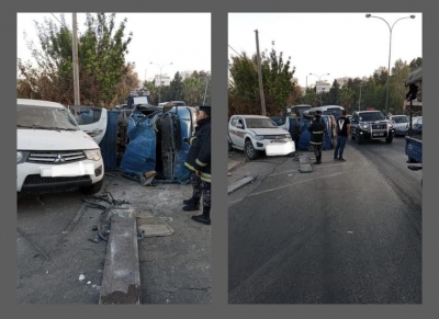 تدهور قلاب واصطدامه بمركبة أخرى على طلوع صافوط