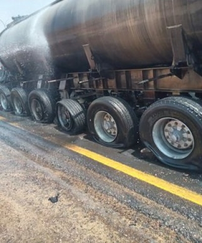 السيطرة على احتراق إطارات صهريج محمل بحامض الفسفوريك