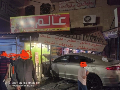 بالصور .. مركبة تقتحم محلاً تجارياً في مدينة جرش دون اصابات