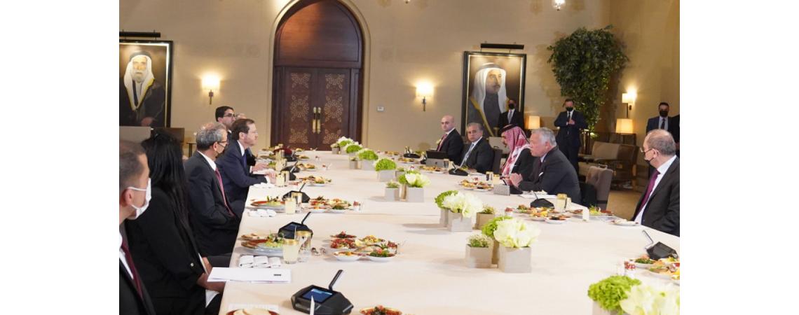 الملك يؤكد خلال لقائه الرئيس الإسرائيلي أهمية العمل لتحقيق السلام