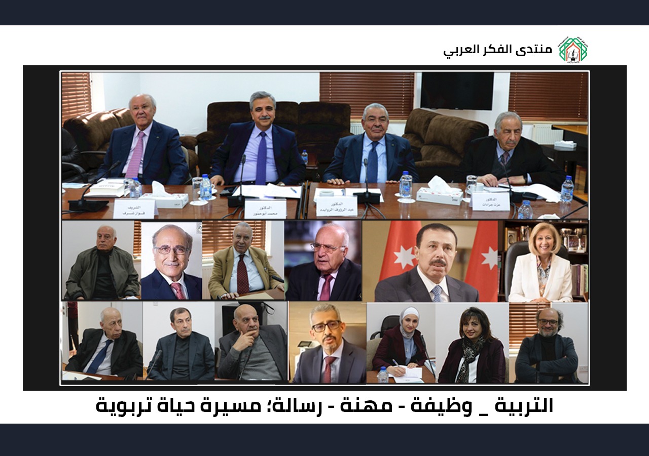 بمشاركة رؤساء حكومات ووزراء سابقين ووزيرة الثقافة وخبراء تربويين لقاء لمنتدى الفكر العربي يناقش مضامين كتاب د.عزت جرادات حول التربية بوصفها وظيفة ومهنة ورسالة
