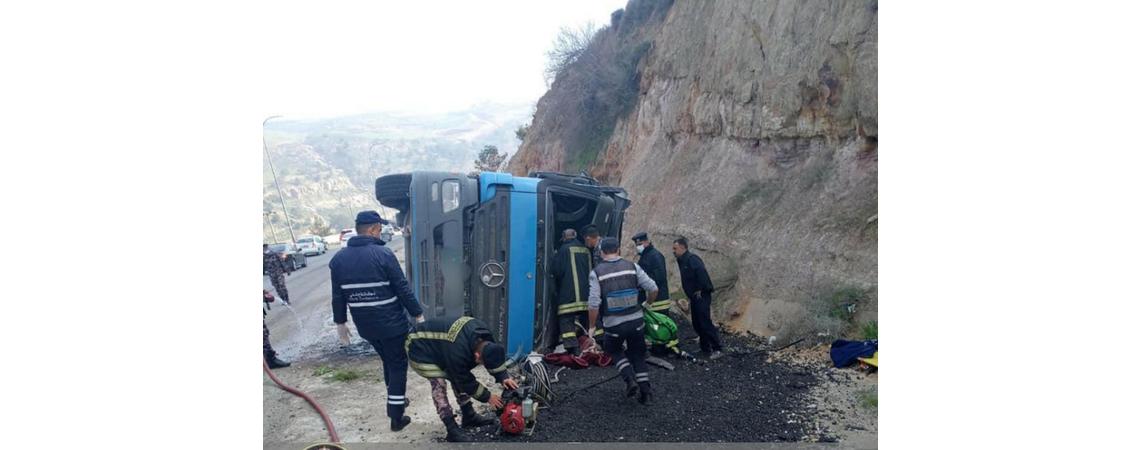 تدهور مركبتي شحن على طريق إربد – عمان (صور)