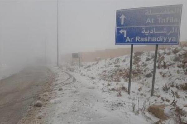 ثلوج وانجماد واغلاق جزئي لعدة طرق في الطفيلة