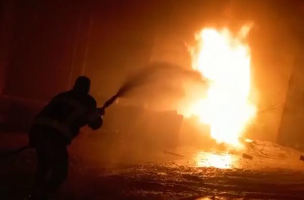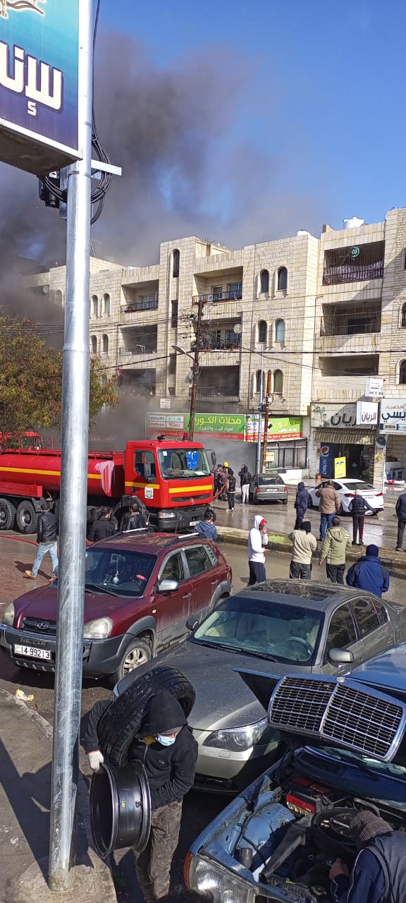 إخلاء بناية إثر حريق كبير في مستودع مواد بناء بمحافظة إربد