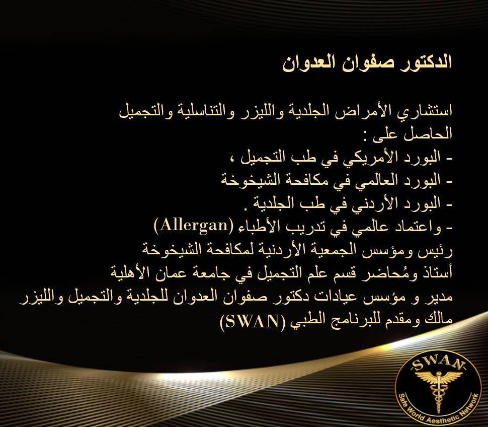 أنباء الوطن - يسعى الانسان دائماً إلى المظهر الجميل ، وتخفيف علامات التقدم بالعمر ، وتعددت وتنوعت العمليات التجميلية في ذلك، إلا أنه يغيب عن الاذهان أن هذه الاجراءات الطبية بحاجة إلى علم ودراية ومهارة في الاجراءات ، فهي تحمل في طياتها الكثير من التفاصيل ، وقد لمع عدد من الأسماء في هذا المجال الذي يجمع بين العلم والفن في آن واحد. الدكتور صفوان العدوان الذي يعتبر من أشهر الأطباء بالمجال في الأردن، وايمانا منه، بأهمية الدراية الكاملة في الأسس، أصدر الكتاب الأول من نوعه في المملكة الأردنية الهاشمية ، في مجال الجلدية والتناسلية والليزر معتمدا في كتابه على المراجع البريطانية والأمريكية. وكانت هذه العصارة التي عملها الدكتور العدوان بعد مرور ثلاثة سنوات من البحوث الطبية والتجارب السريرية التي لها علاقة بالعيادات والمرضى ، حيث استطاع الدكتور صفوان أن يؤلف كتابه الطبي بمجال الجلدية والتناسلية "مجمع الجلدية والتجميل والليزر” بحيث يكون مرجع للطلاب في مرحلة الدراسة في التخصصات الطبية والتجميلية في فترة الدراسة وما بعدها ،ويحتوي الكتاب على كثير من المعلومات المفيدة والمحدثة. وتالياً السيرة الذاتية لمؤلف الكتاب الدكتور صفوان العدوان هو استشاري الأمراض الجلدية والليزر والتناسلية والتجميل الحاصل على : البورد الأمريكي في طب التجميل البورد العالمي في مكافحة الشيخوخة البورد الأردني في طب الجلدية اعتماد عالمي في تدريب الأطباء (ALLergan) رئيس ومؤسس الجمعية الأردنية لمكافحة الشيخوخة أستاذ ومحاضر قسم علم التجميل في جامعة عمان الأهلية مدير ومؤسس عيادات دكتور صفوان العدوان للجلدية والتجميل والليزر مالك ومقدم للبرنامج الطب