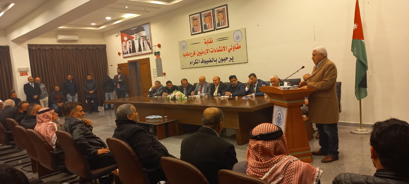 اقامت كتلة الوفاء اجتماع مع مقاولي الانشاءات في محافظة مادبا لدعم الكتلة ومؤازرتها ولطرح افكارهم وبرامجهم الانتخابية الهادفه، والتي تصب جميعها في مصلحة المقاول والاستماع الى هموم ومشاكل قطاع المقاولين في محافظة مادبا.