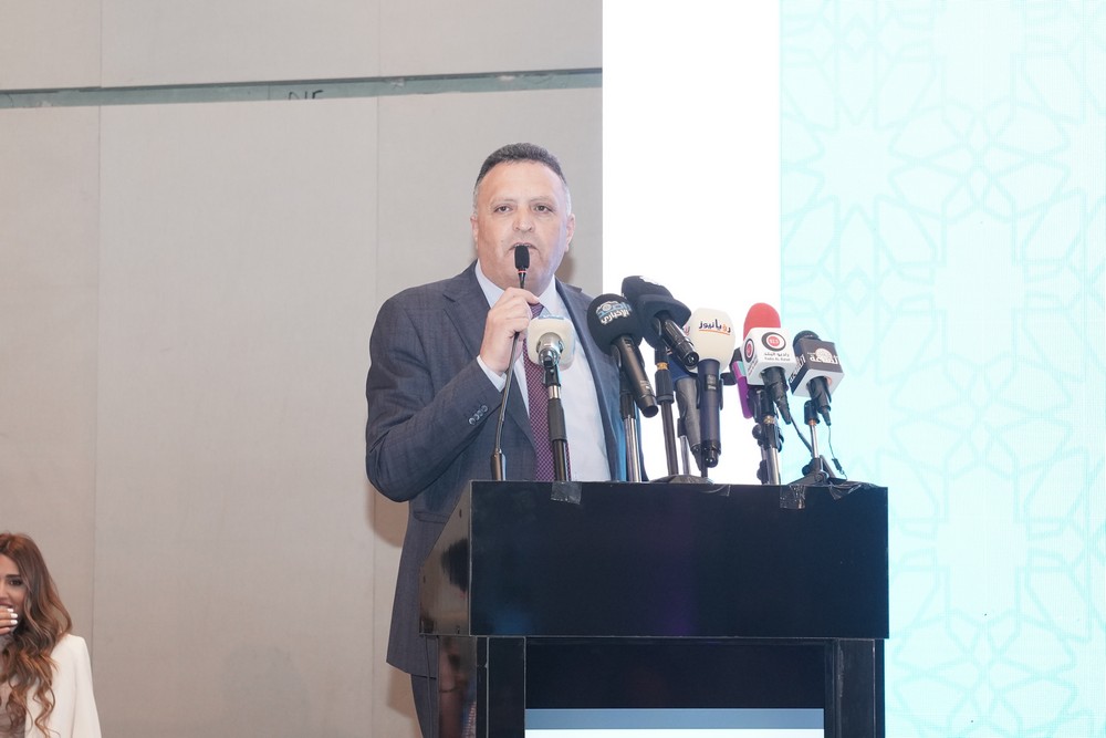 رئيس مجلس إدارة مركز حماية وحرية الصحفيين، راعي الأمسية، دولة السيد طاهر المصري صعد إلى منصة الاحتفالية لتكريم الجميع، وأثنى على جهودهم في دعم حرية التعبير والإعلام.