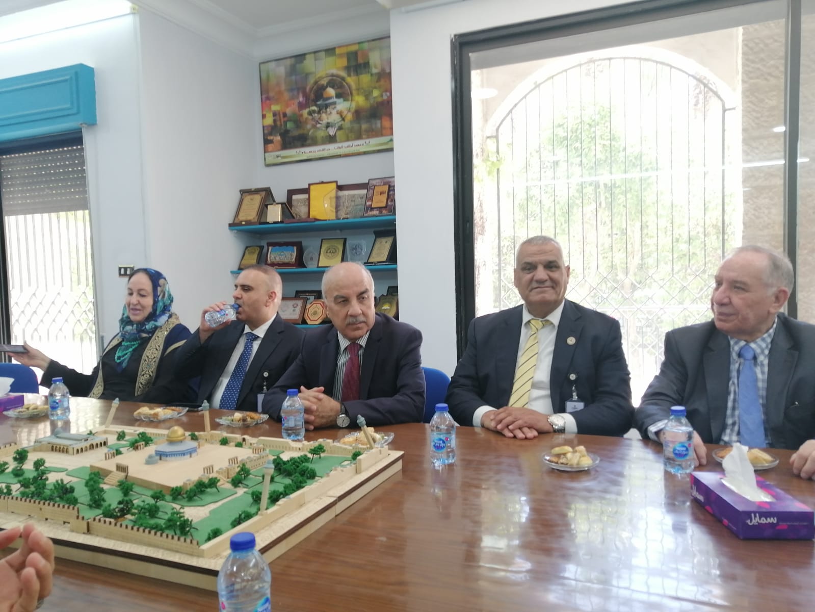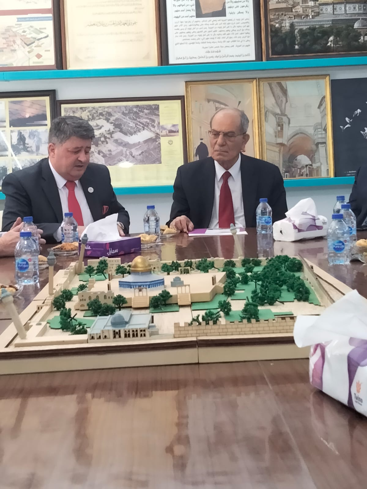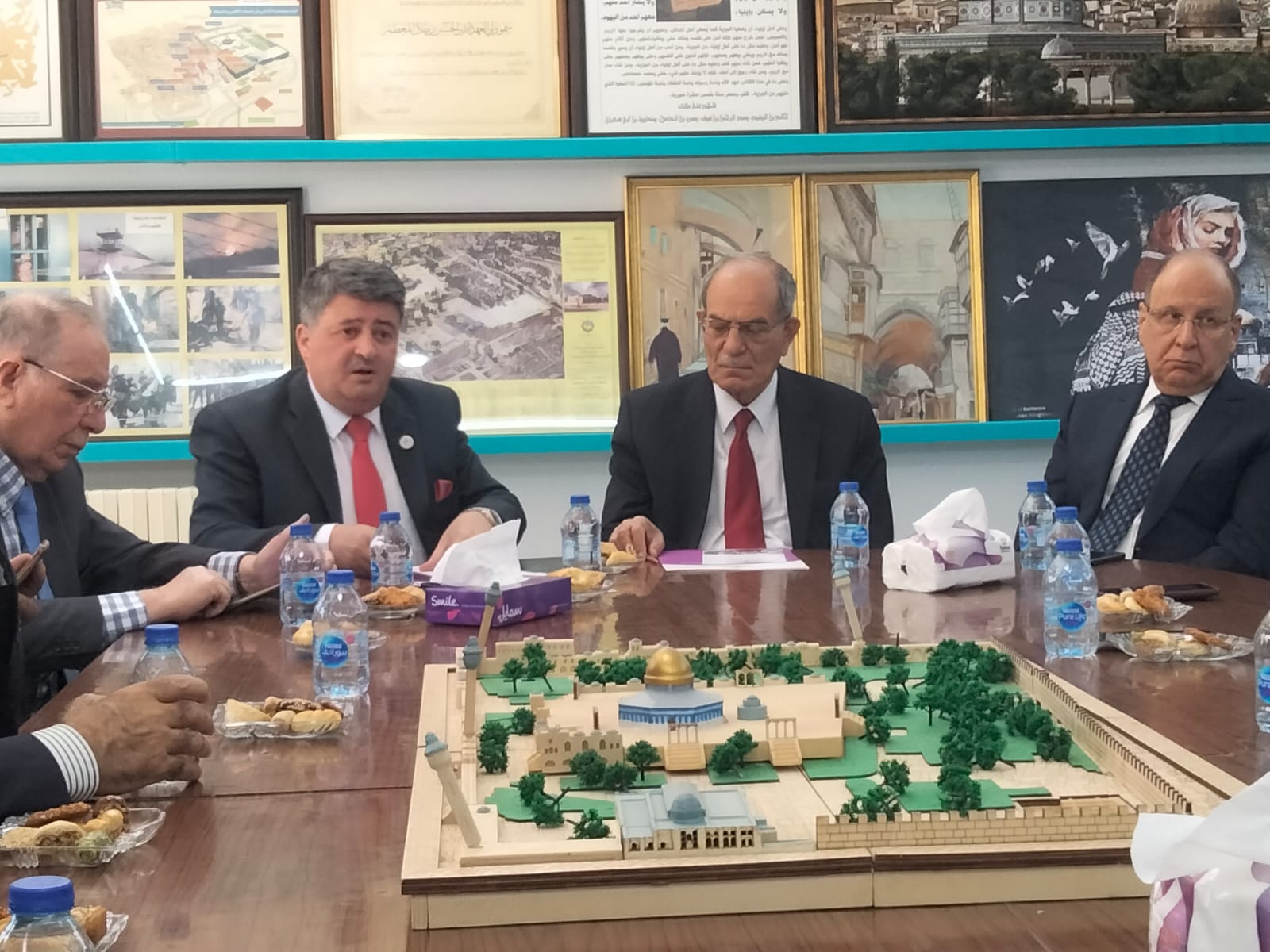 وكان أمين عام اللجنة الملكية لشؤون القدس الدكتور عبد الله توفيق كنعان في مقدمة المستقبلين في مقر أمانة اللجنة إلى جانب الدكتور نصر شقيرات ومحمد سدر وسوسن الكيلاني وحسام عليان وآرام الصعوب.