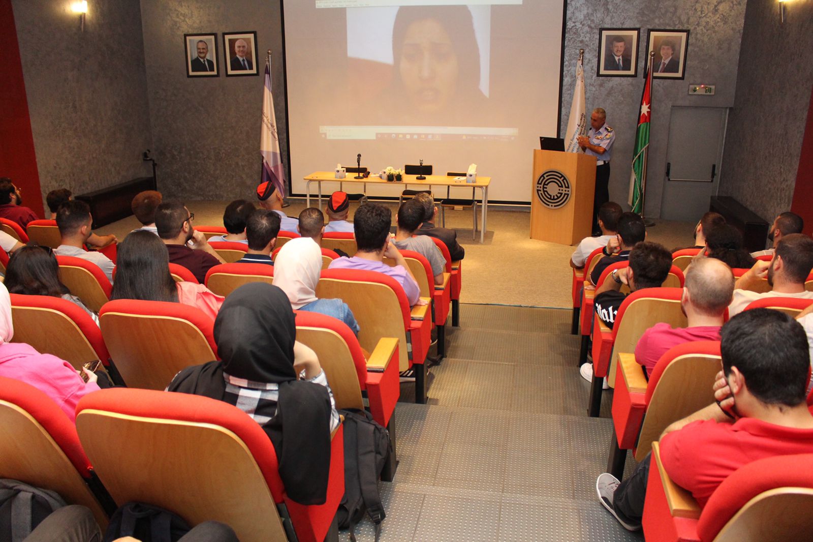 وعلى هامش اللقاء قدم النقيب حابس العبادي محاضرة بعنوان " واقع السلامة المرورية في الأردن" نظمتها عمادة شؤون الطلبة في الجامعة بالتعاون مع المعهد المروري الأردني، بحضور طلبة الجامعة.