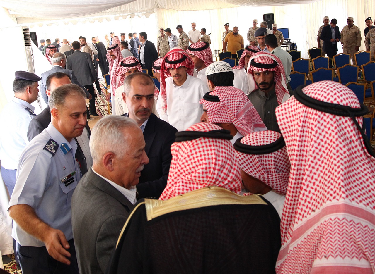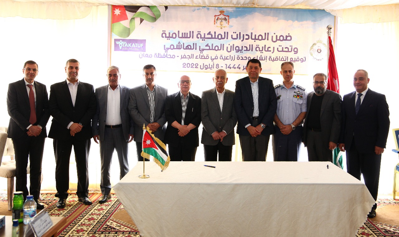 أنباء الوطن - رعى رئيس الديوان الملكي الهاشمي، رئيس لجنة متابعة تنفيذ مبادرات جلالة الملك، يوسف حسن العيسوي، اليوم الخميس، في قضاء الجفر، حفل توقيع ثلاث اتفاقيات، لإنشاء وحدات وفروع إنتاجية لمصانع وشركات في قضاء الجفر، بمنطقة البادية الجنوبية بمحافظة معان، وفي قضاء أم الجمال بمنطقة البادية الشمالية بمحافظة المفرق، وفي قضاء الفيصلية بمحافظة مأدبا.