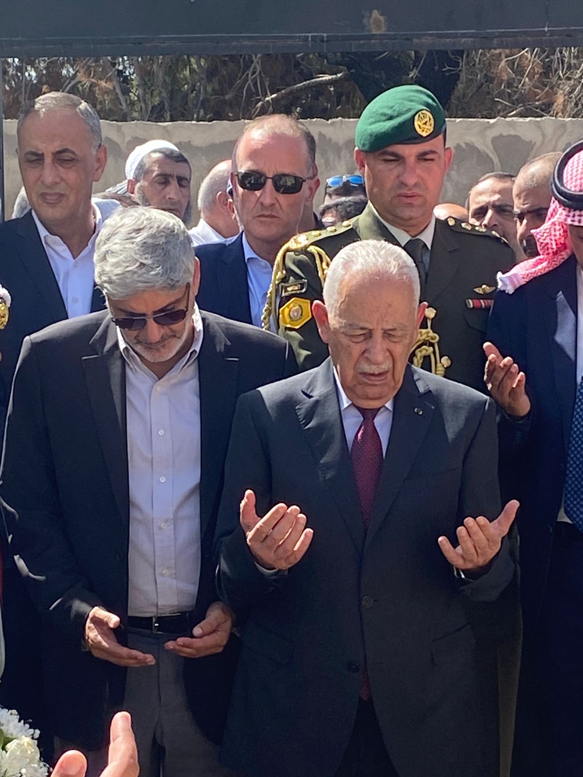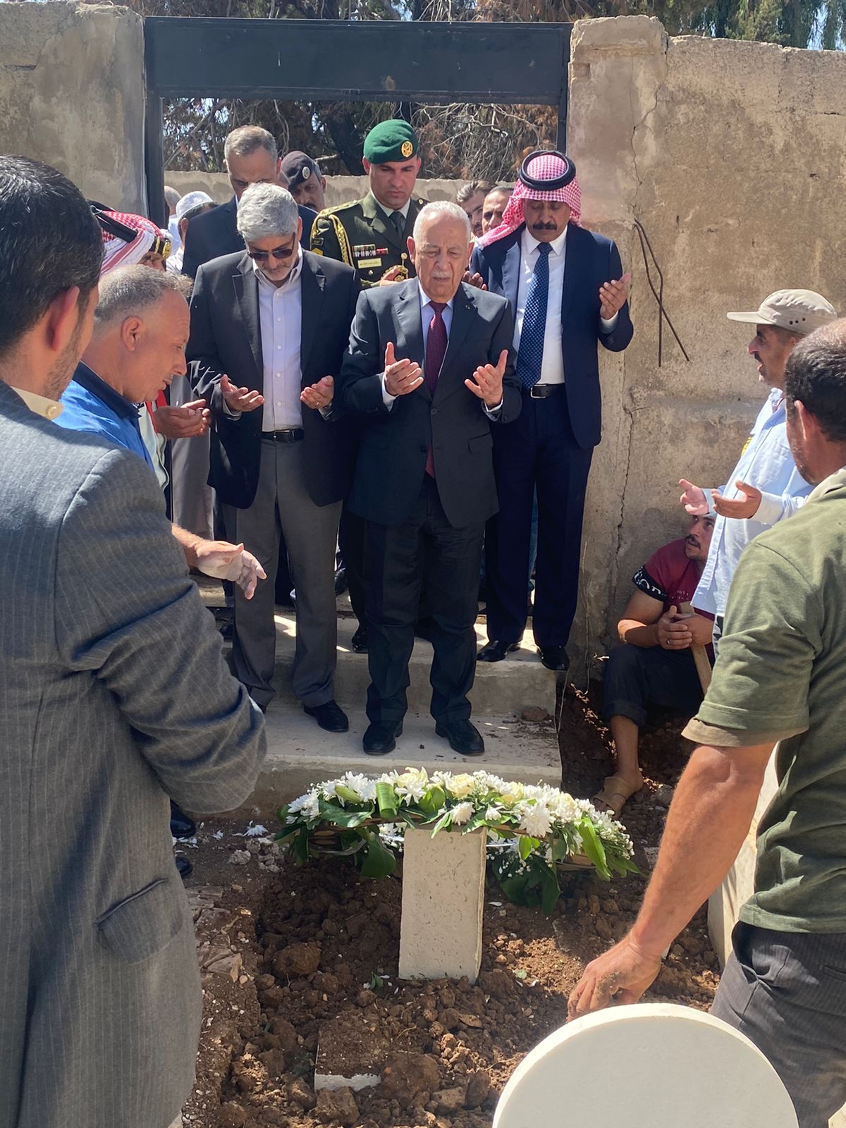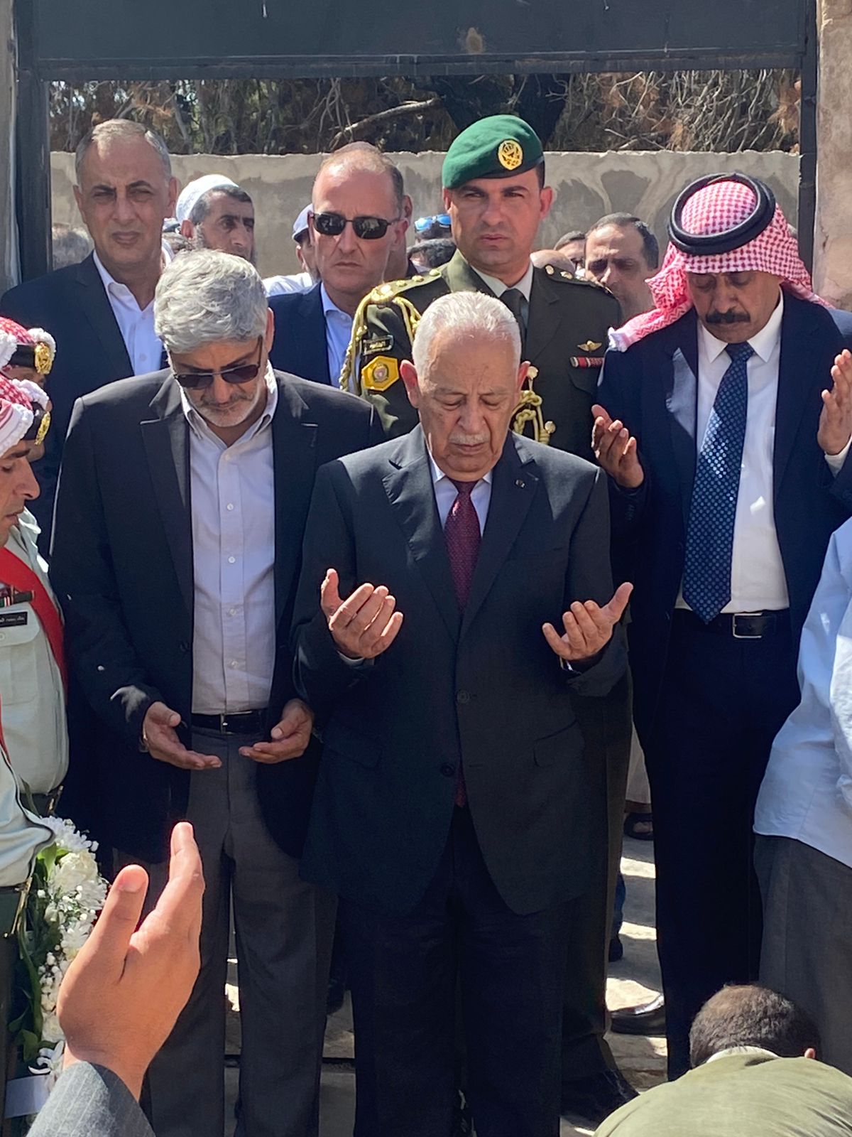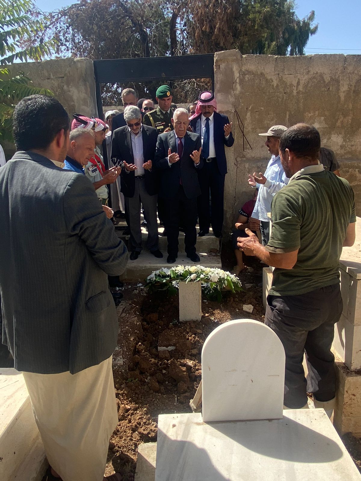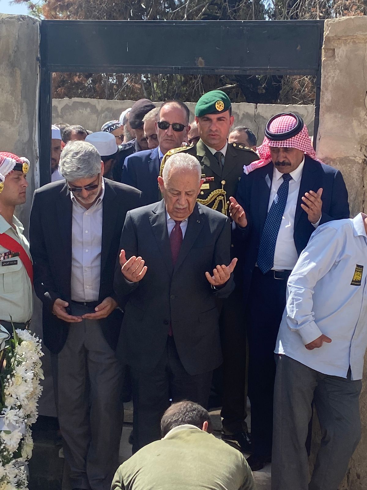 أنباء الوطن - مندوبا عن جلالة الملك عبدالله الثاني بن الحسين المعظم ، شارك معالي رئيس الديوان الملكي الهاشمي بتشييع جثمان الانسه زينه الرفاعي شقيقة دولة السيد زيد الرفاعي في محافظه العاصمه بمقبره ام الحيران يوم الاثنين الموافق ٢٦/٩/٢٠٢٢ونقل العيسوي تعازي ومواساة جلالة الملك لأسرة وذوي الفقيدة، سائلا الله العلي القدير أن يتغمدها بواسع رحمته، ويسكنها فسيح جنانه.
