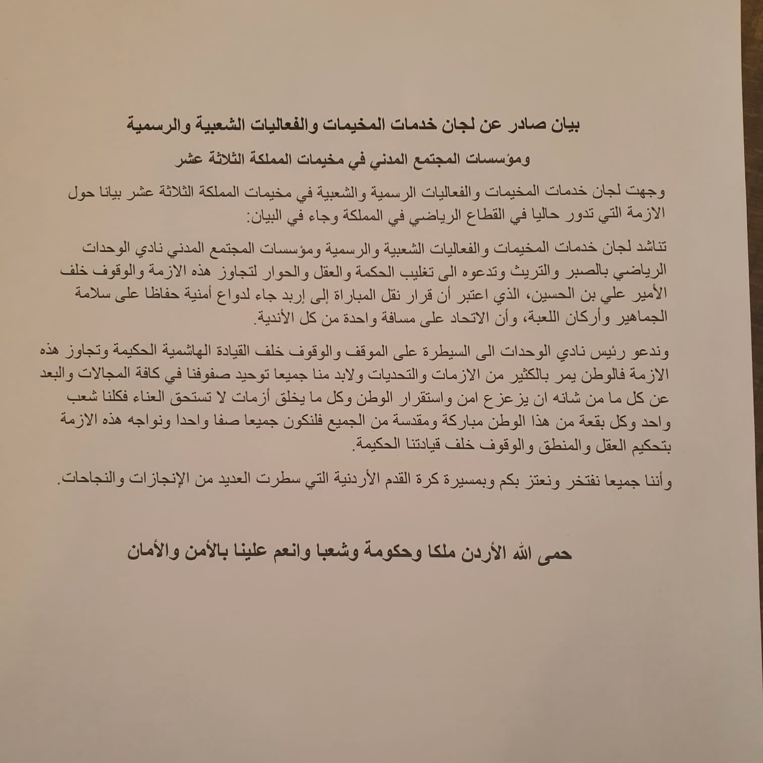 بيان من الفعاليات الشعبية والوجهاء والشيوخ في المخيمات الفلسطينية في (الأردن)
