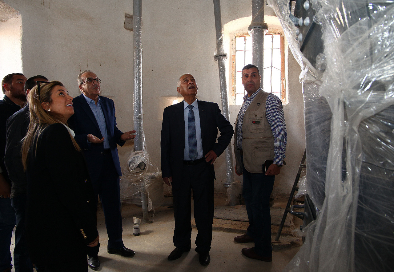 واستمع العيسوي إلى إيجاز حول مراحل أعمال الترميم المتعلقة بتأهيل قصر الملك المؤسس والمرافق التي يشتمل عليها تنفيذ المشروع.