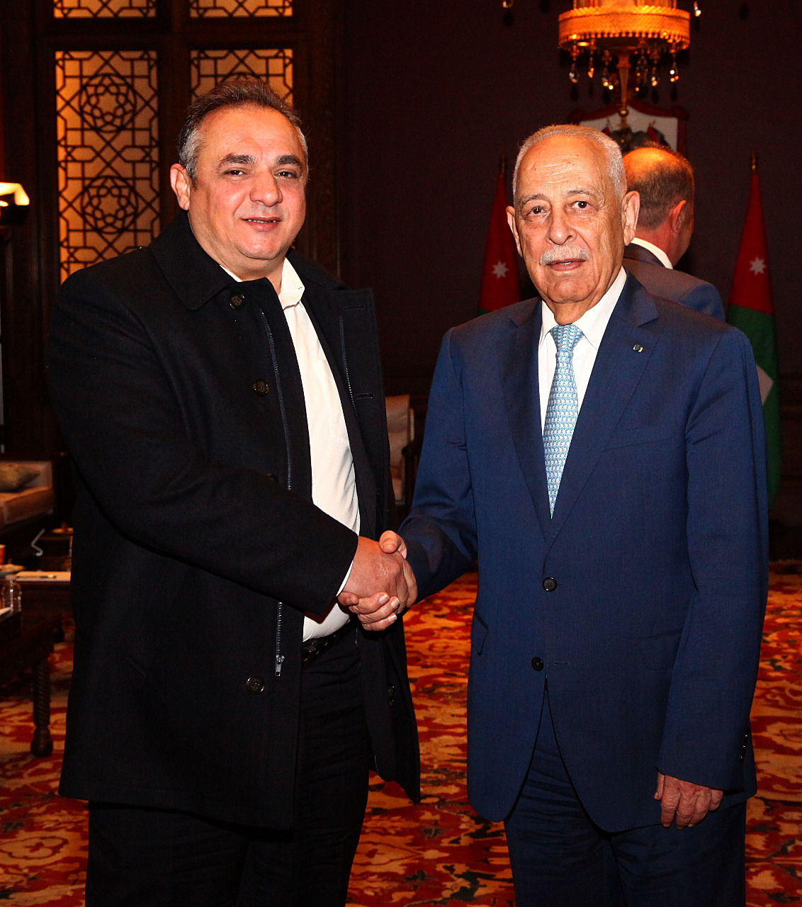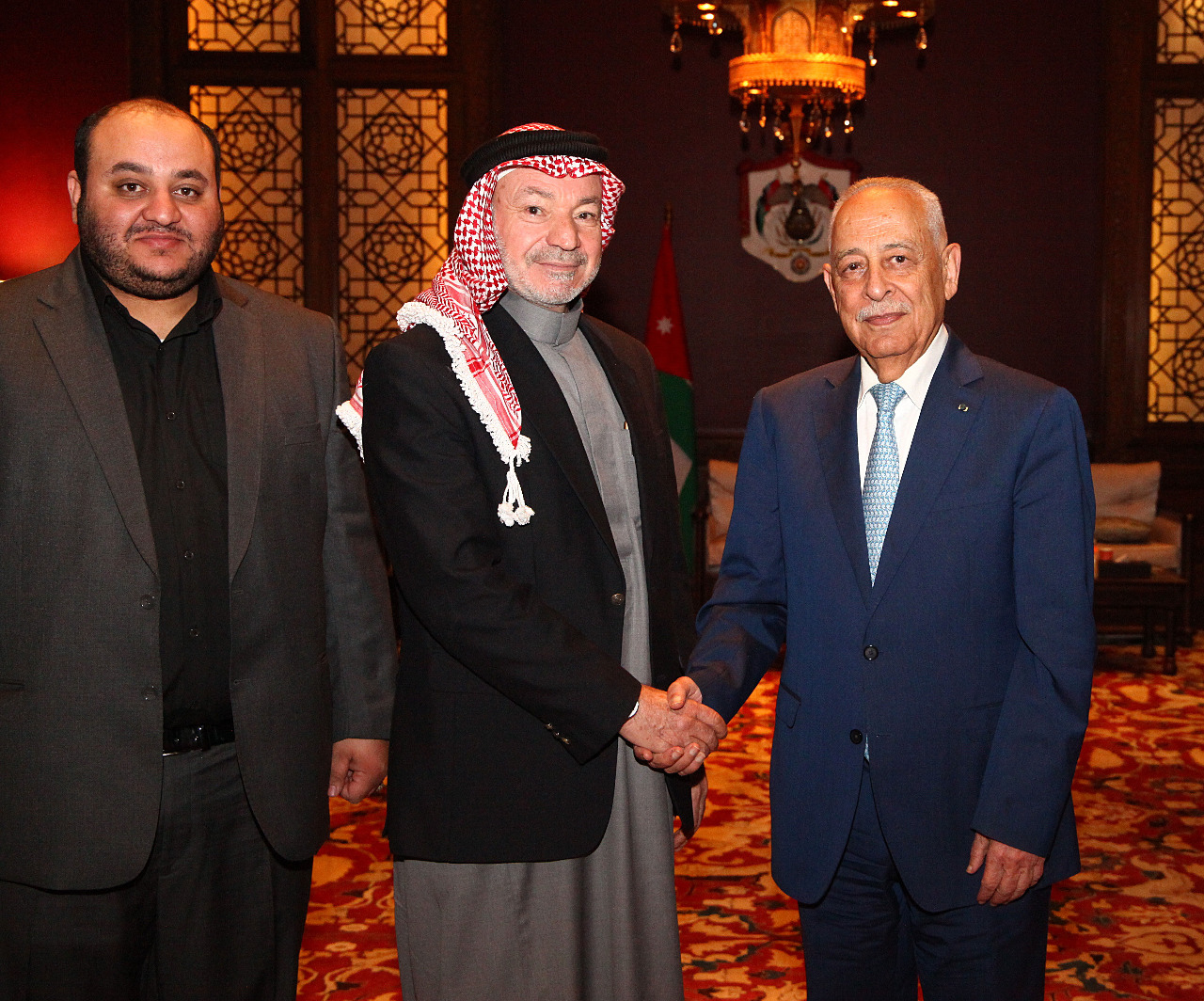 أنباء الوطن - معالي رئيس الديوان الملكي الهاشمي العامر السيد يوسف حسن العيسوي يلتقي في قصر بسمان الزاهر مجموعة من جمعية مجلس عشائر الدوايمة برئاسة سعادة النائب الدكتور فايز اسماعيل محمد بصبوص اليوم الثلاثاء 27-12-2022