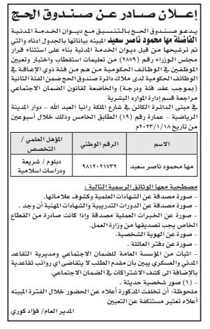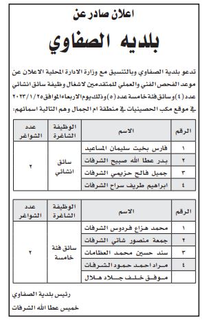 وظائف شاغرة ومدعوون لاستكمال إجراءات التعيين -أسماء