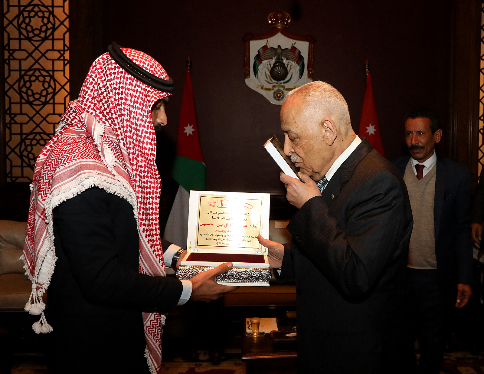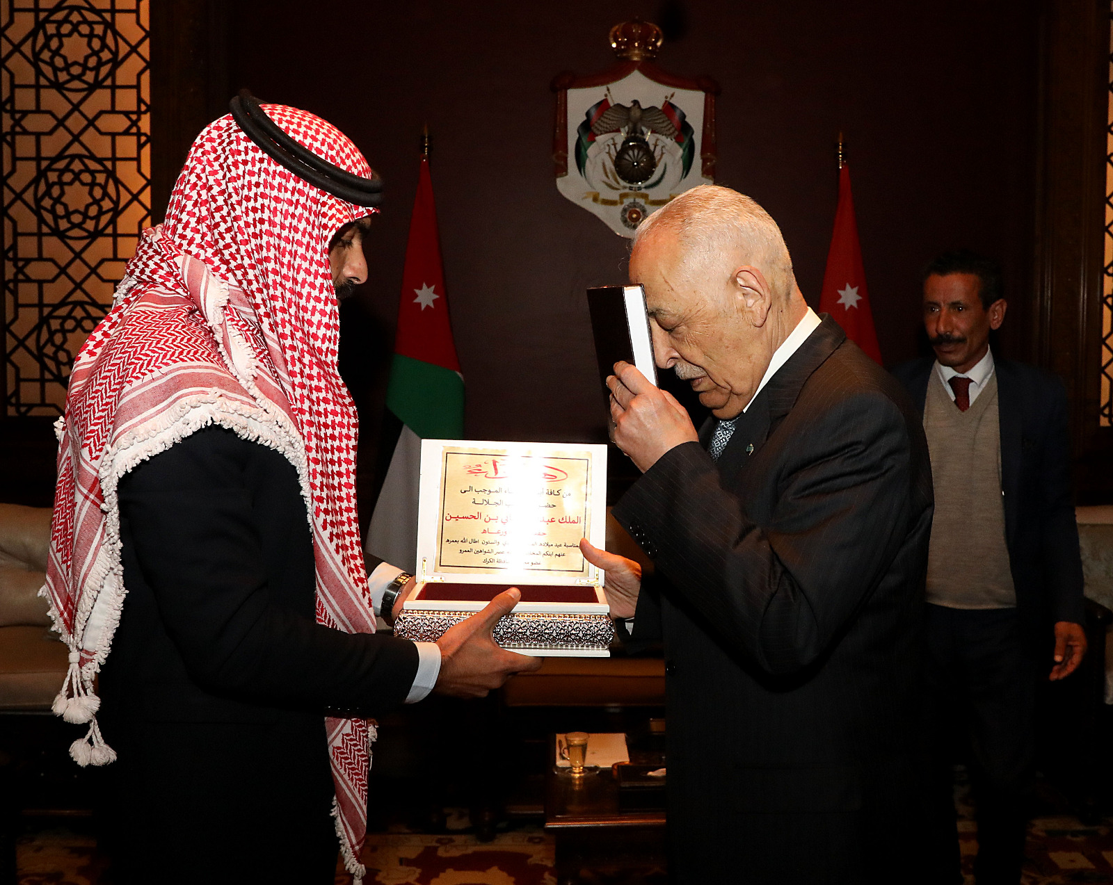 كما التقى معالي رئيس الديوان الملكي الهاشمي السيد يوسف حسن العيسوي يلتقي في الديوان الملكي الهاشمي اليوم الاربعاء الموافق 1-2-2023 مجموعة من وجهاء وممثلي قرى ومناطق لواء قصبة اربد برئاسة سعادة النائب راشد الشوحة